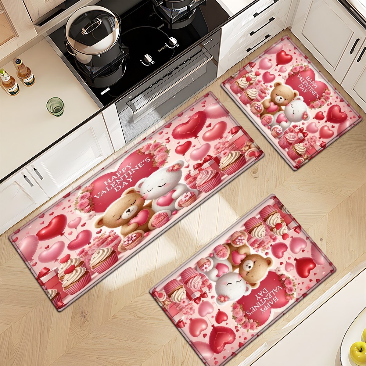 Flannel Rug - 2-piece set - Valentine's Day Heart Polka Dot Envelope Mat