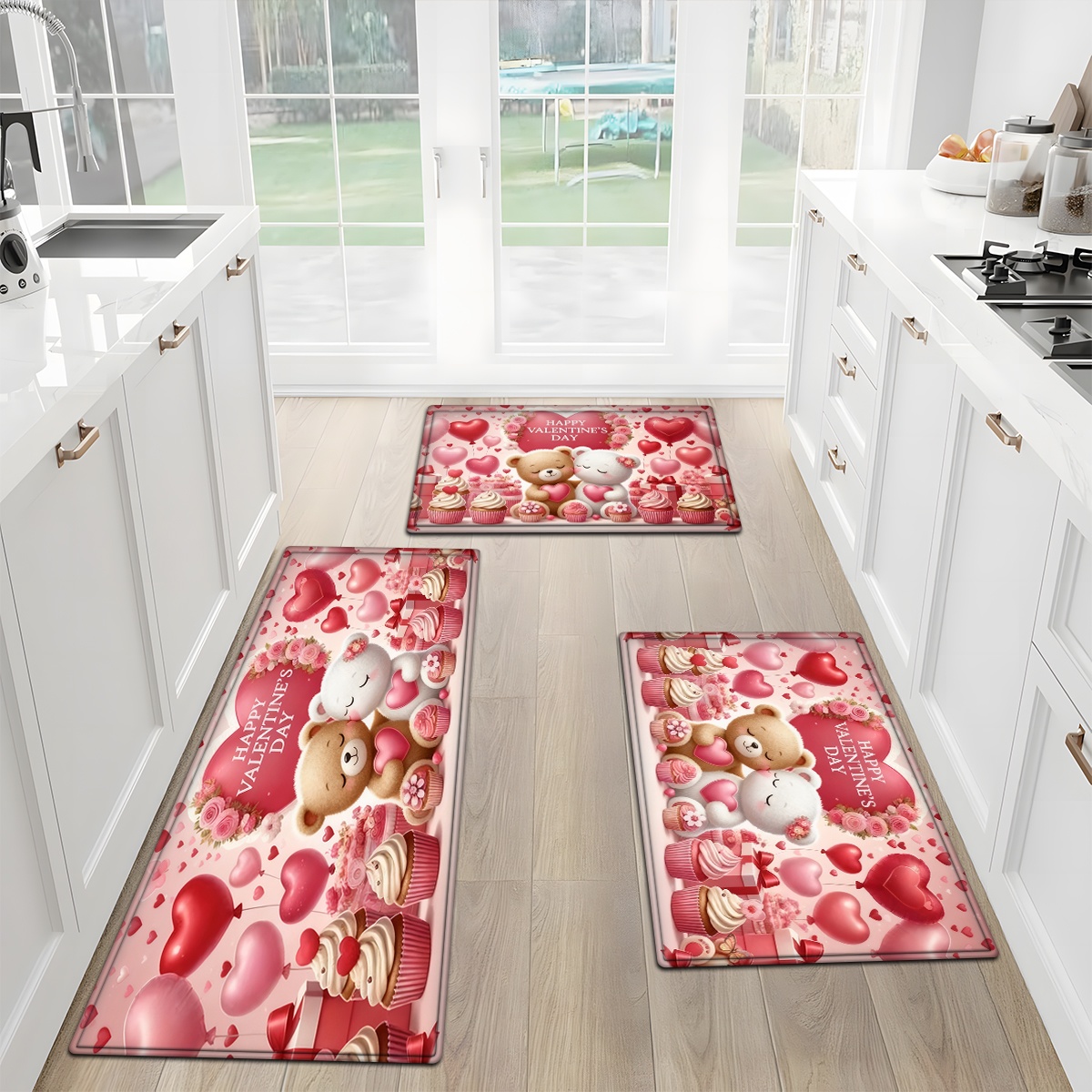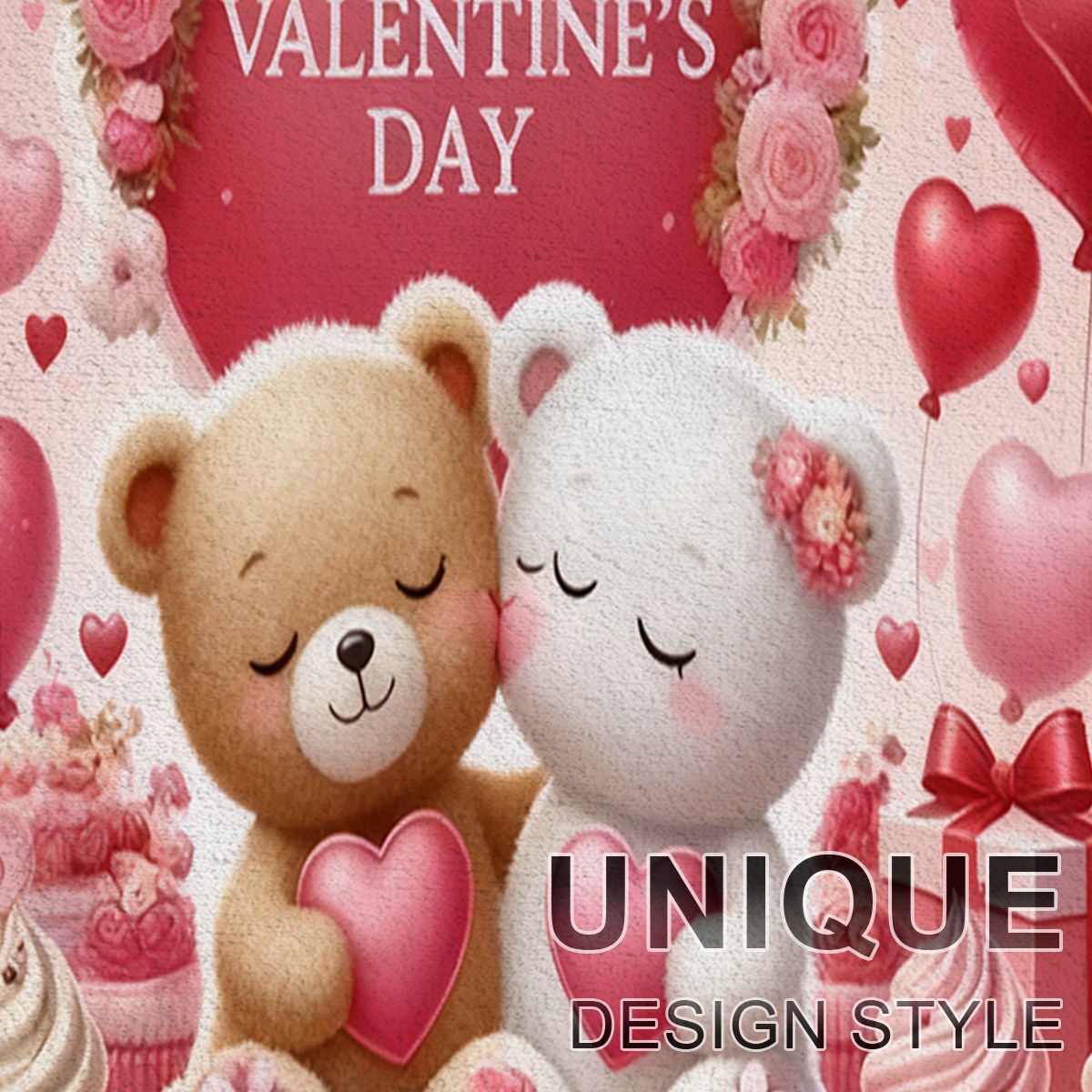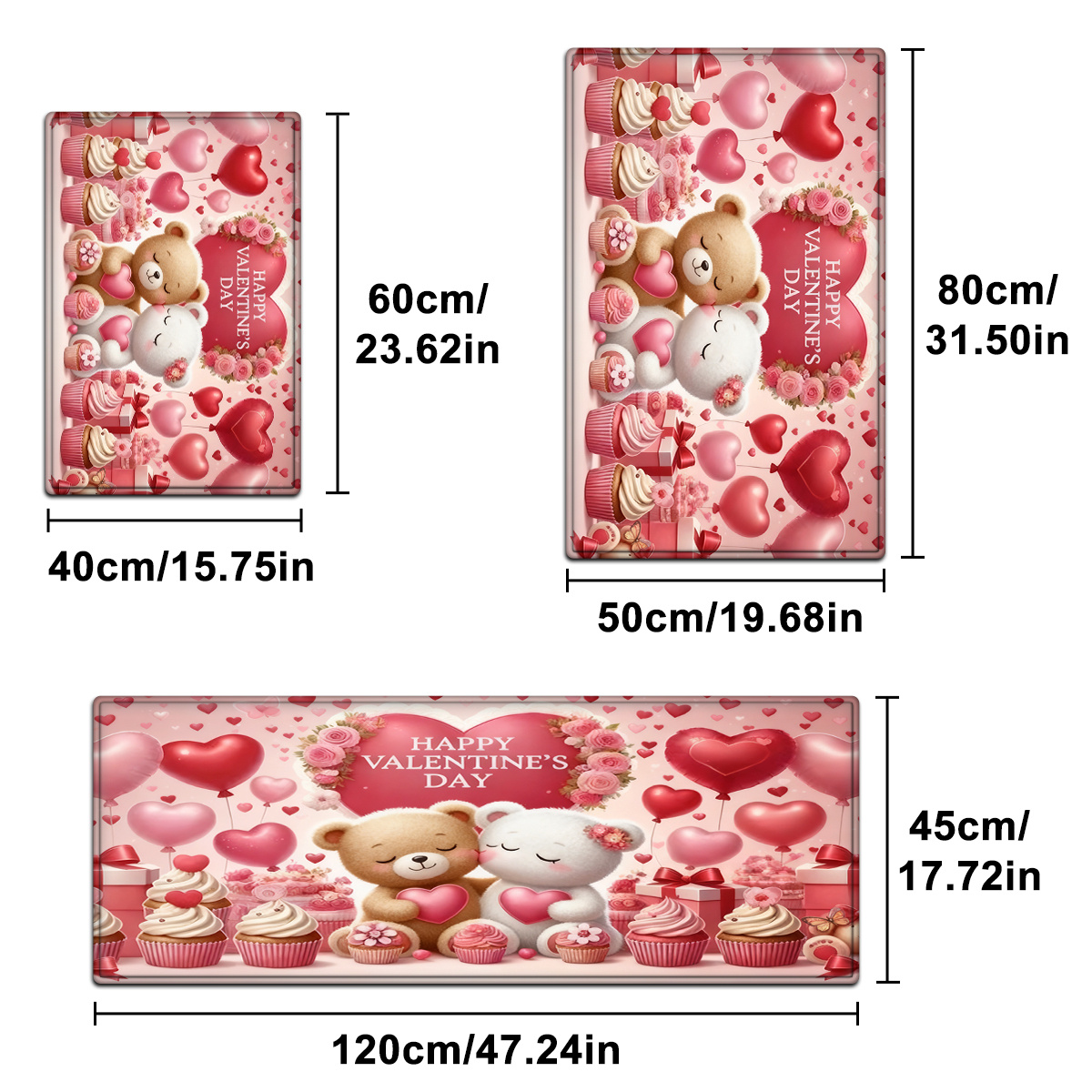 Flannel Rug-3 Piece Set - Valentine's Day Cake Heart Bear Print