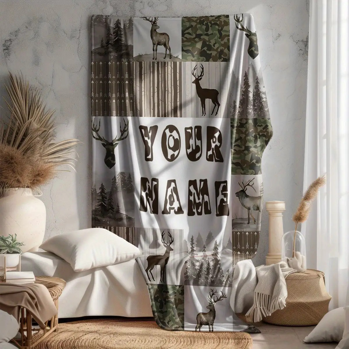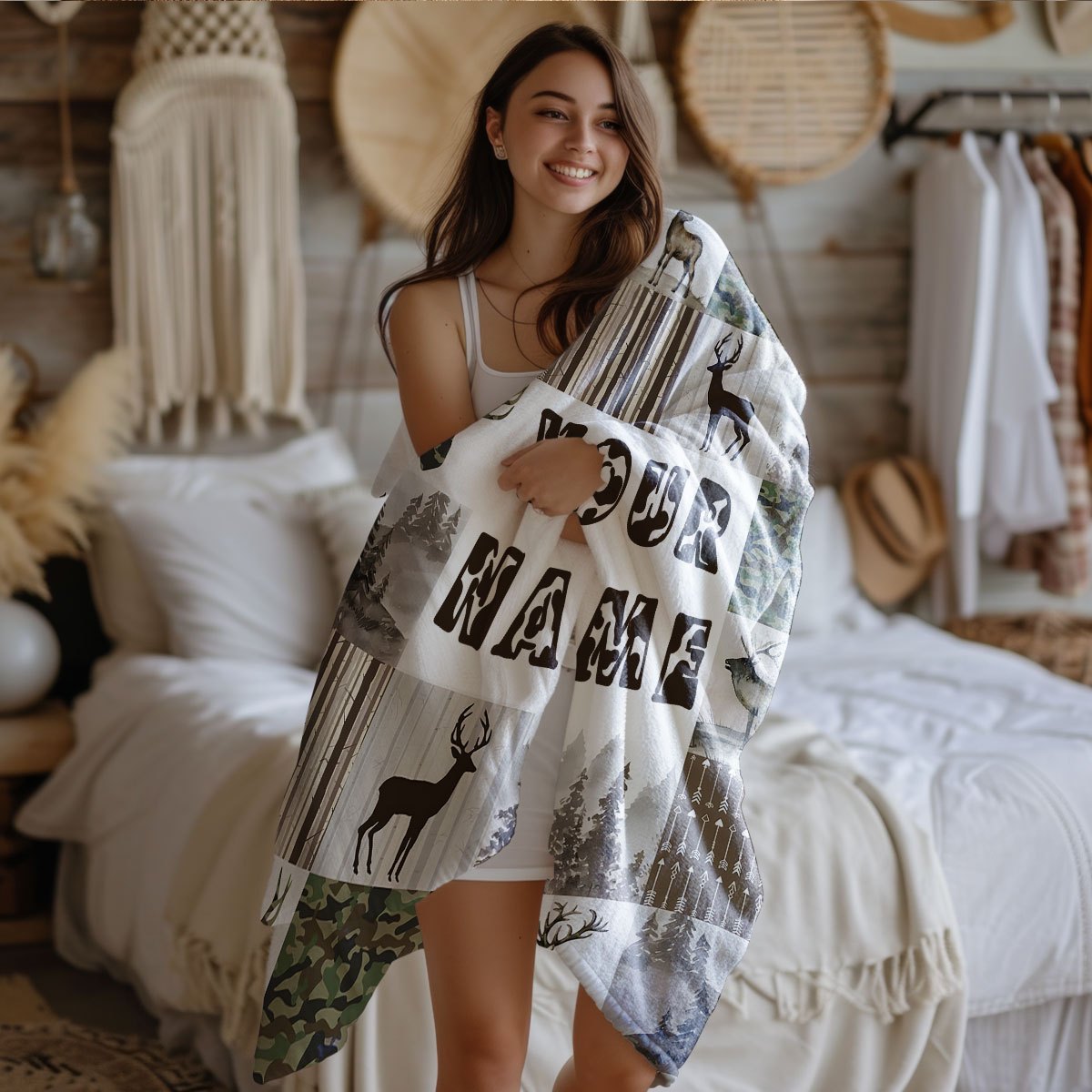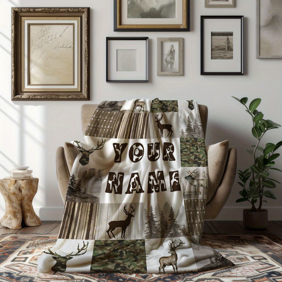 Flannel Blanket - Custom Name Deer Pattern Outdoor Forest Camouflage Blanket