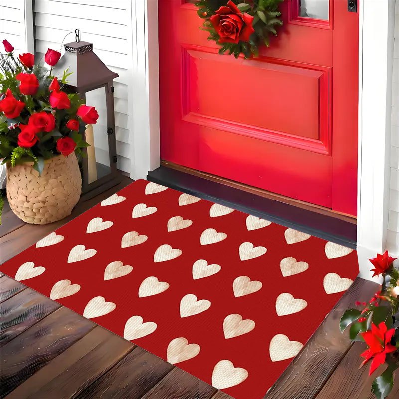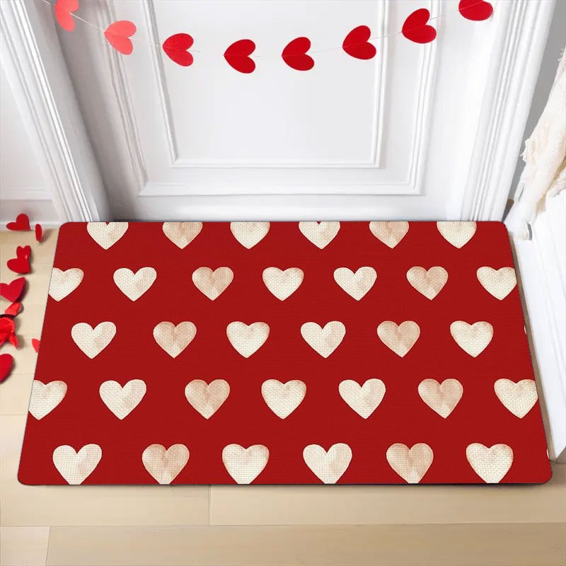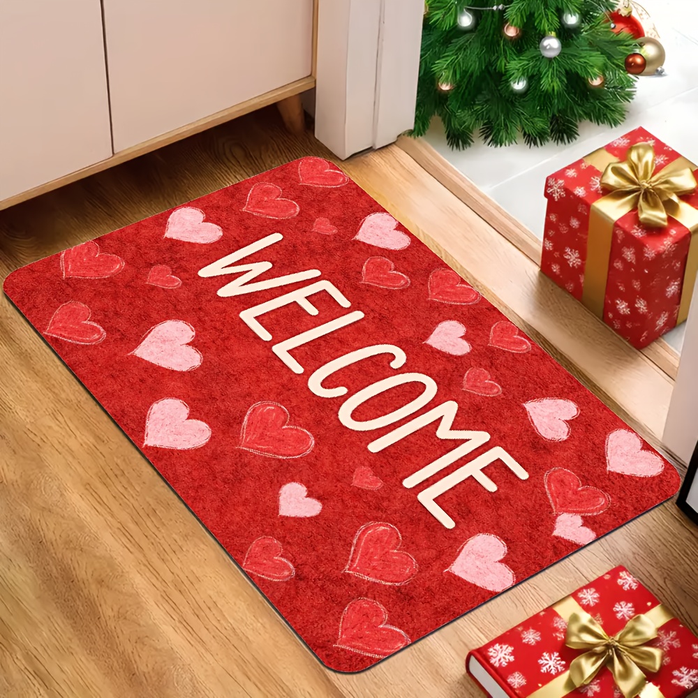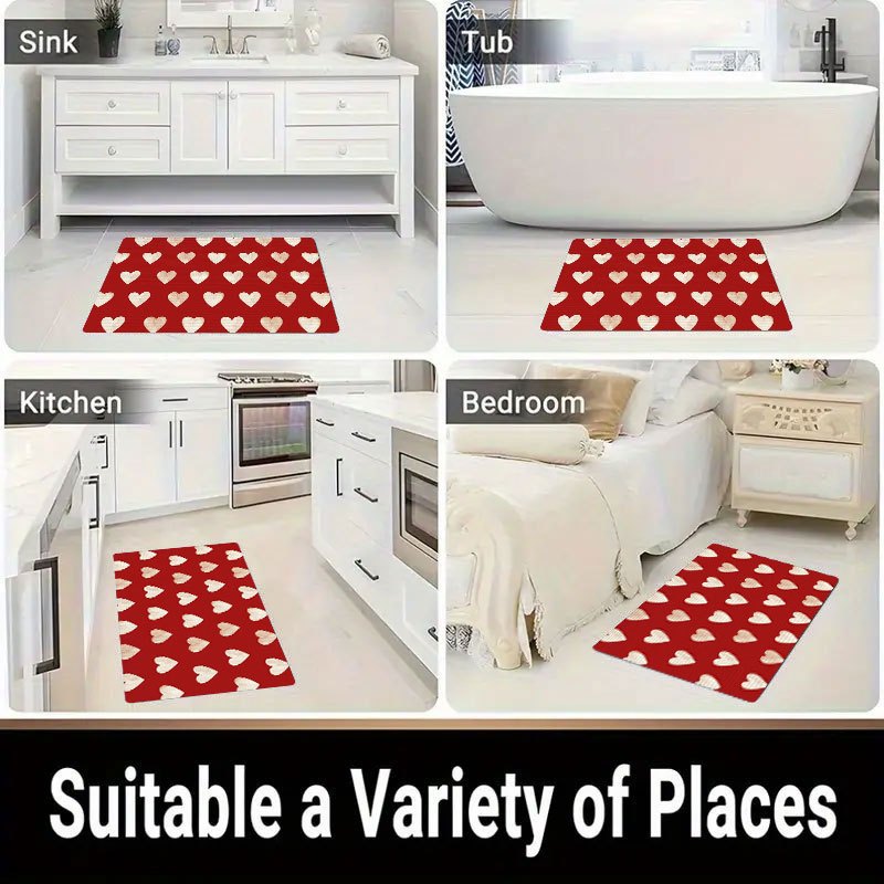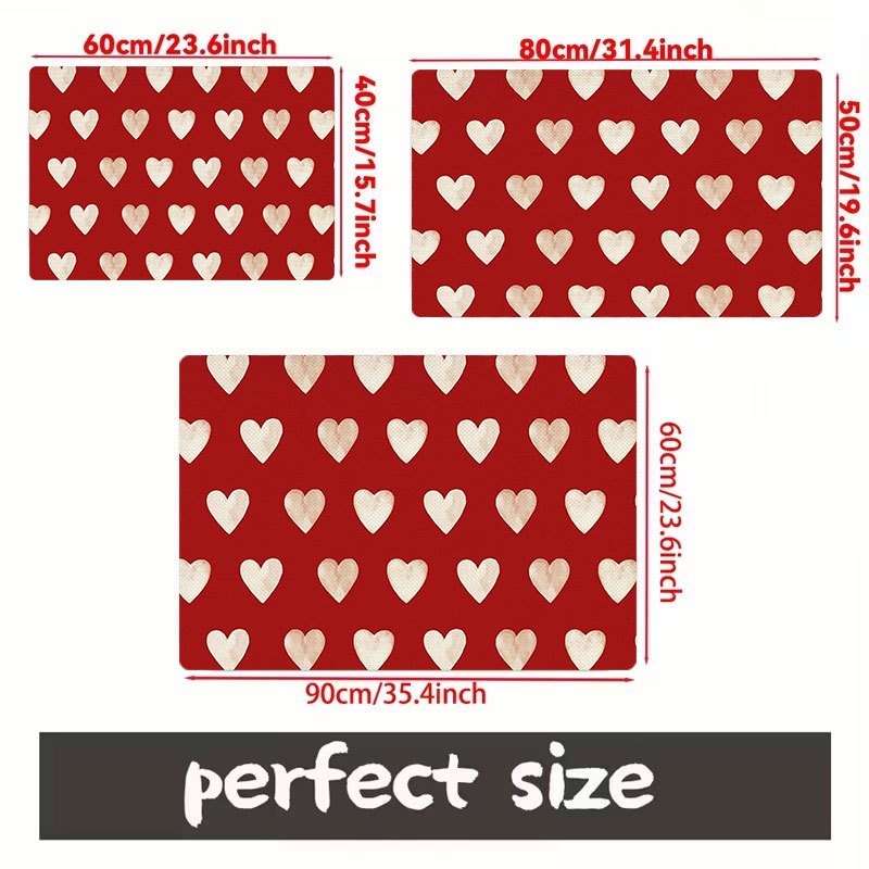Flannel Rug - 3 Pieces - Red Heart Pattern Christmas Decoration