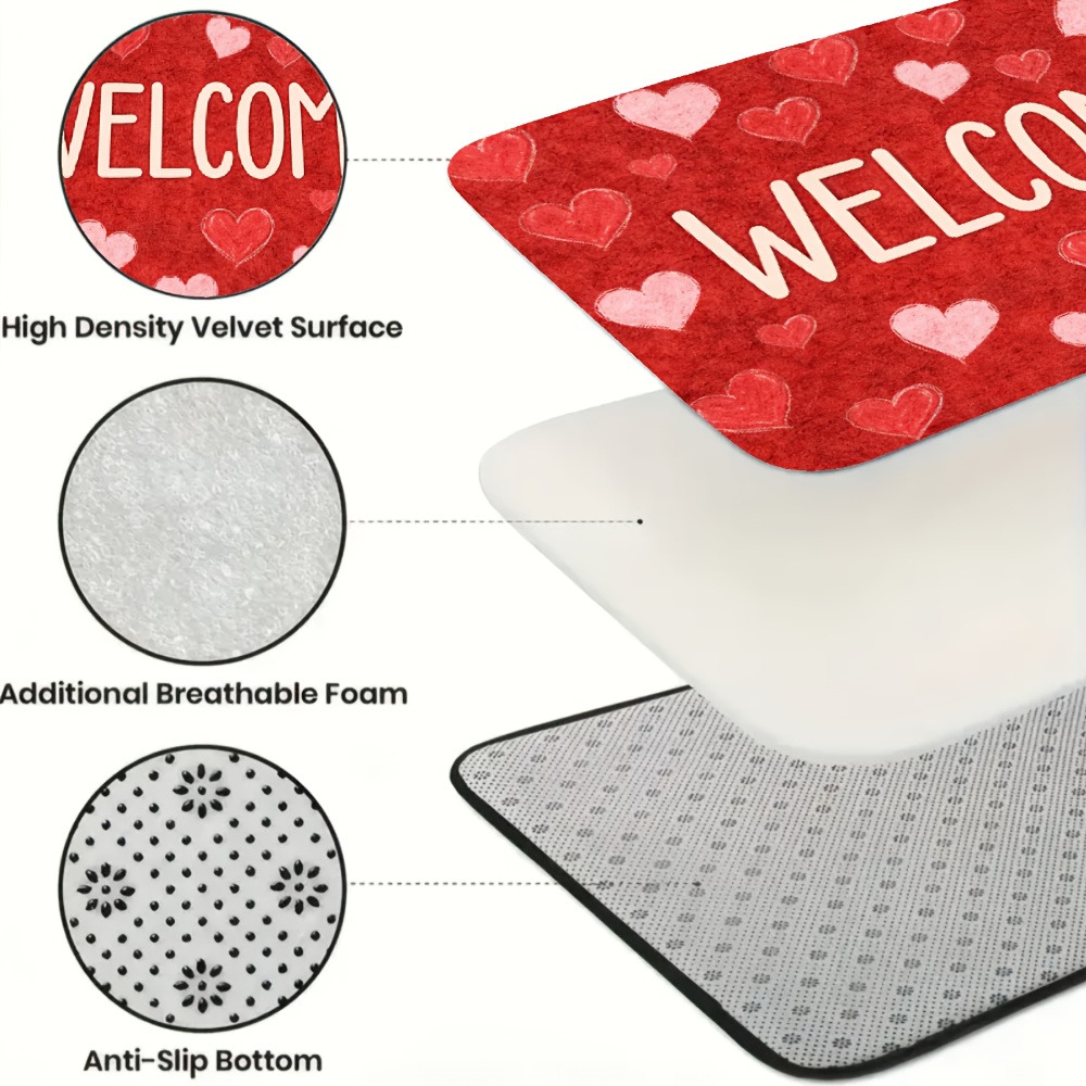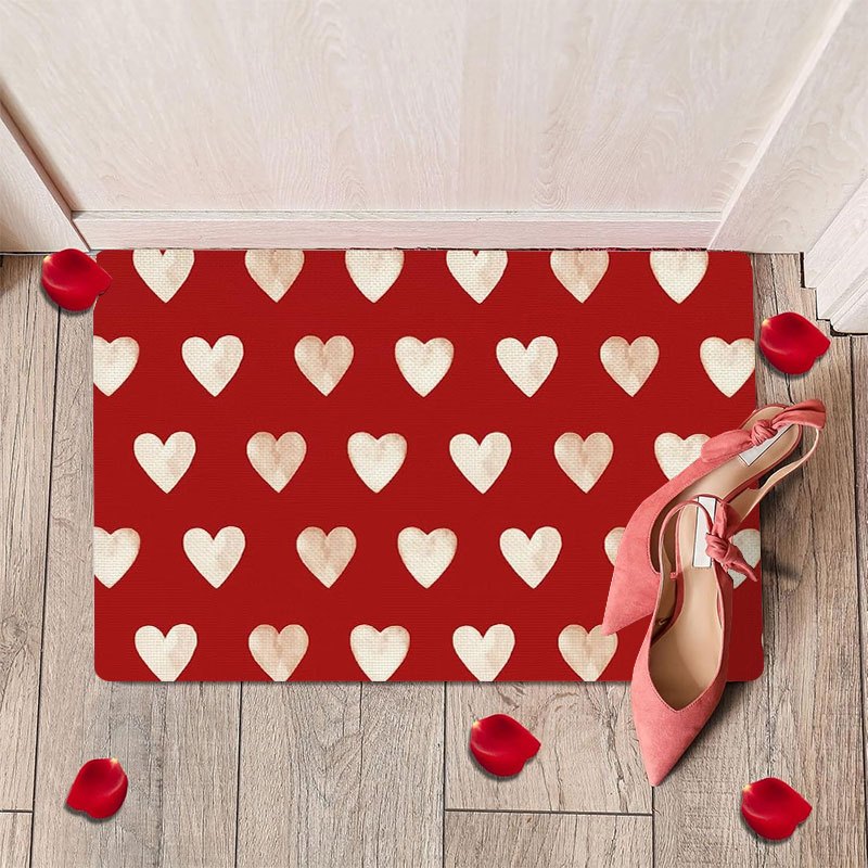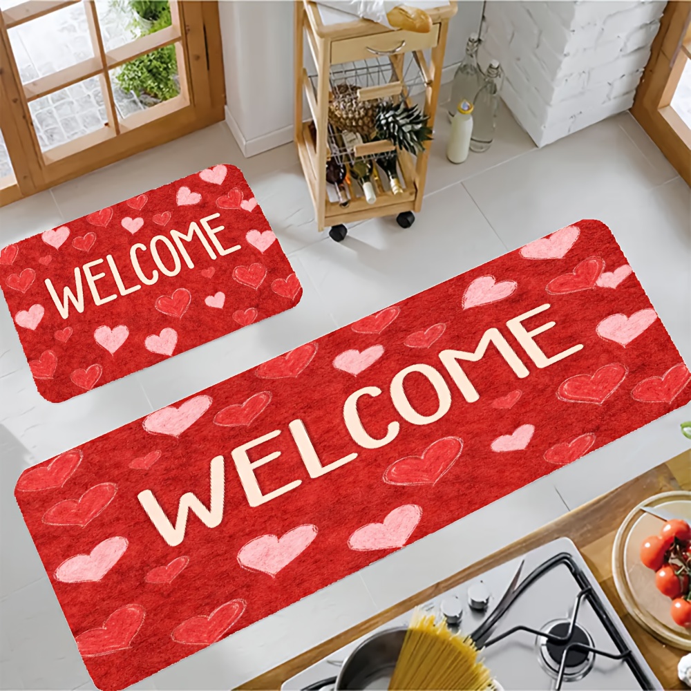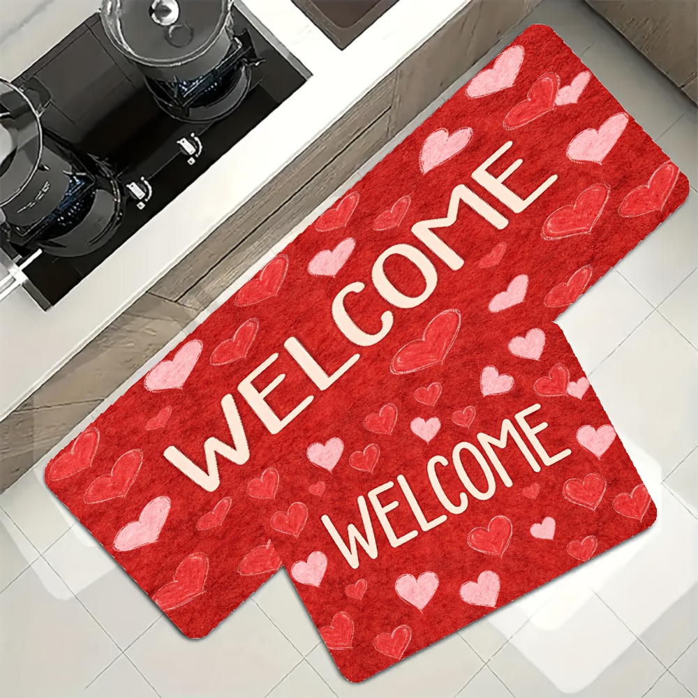 Flannel Rug - 3 Pieces - Red Heart Pattern Christmas Decoration