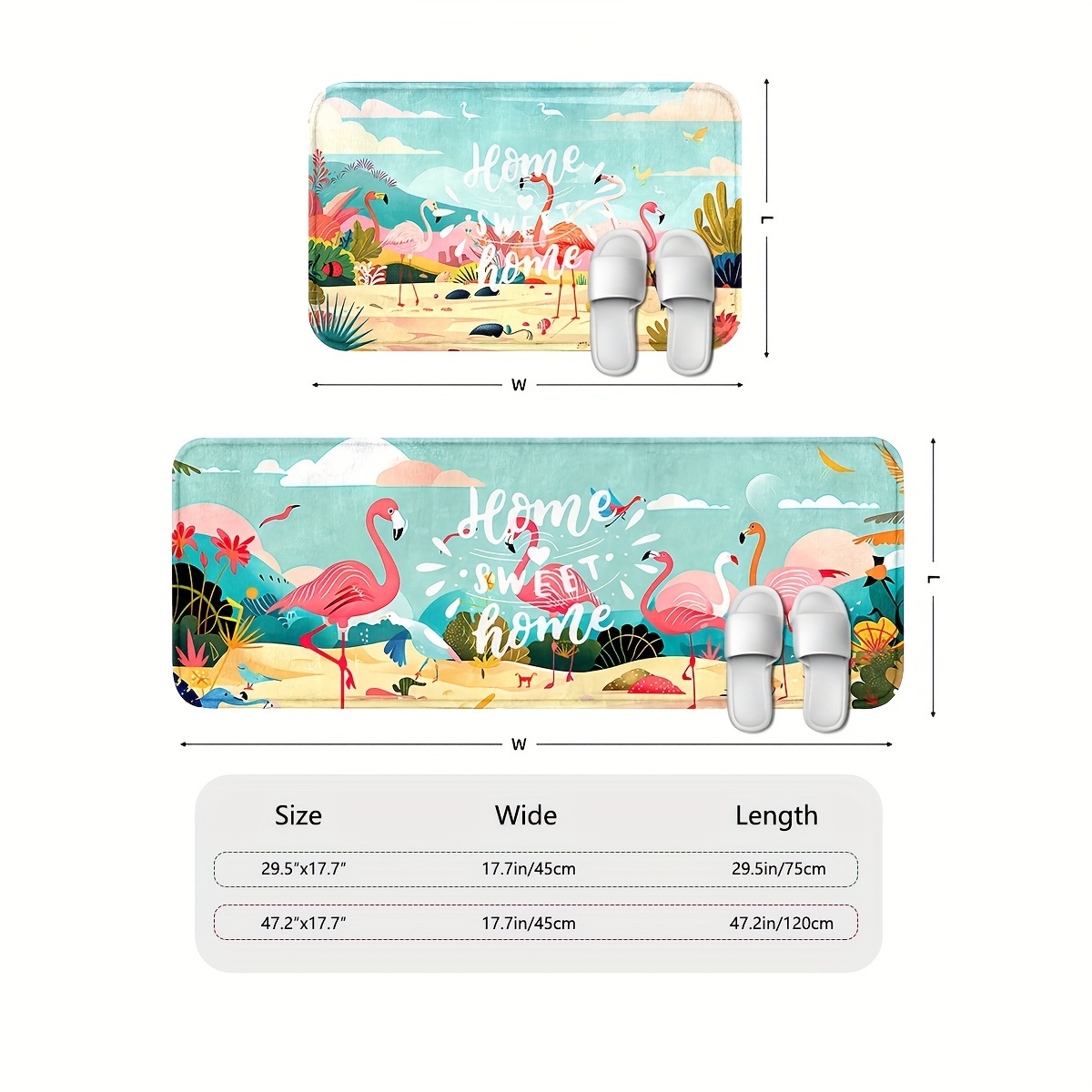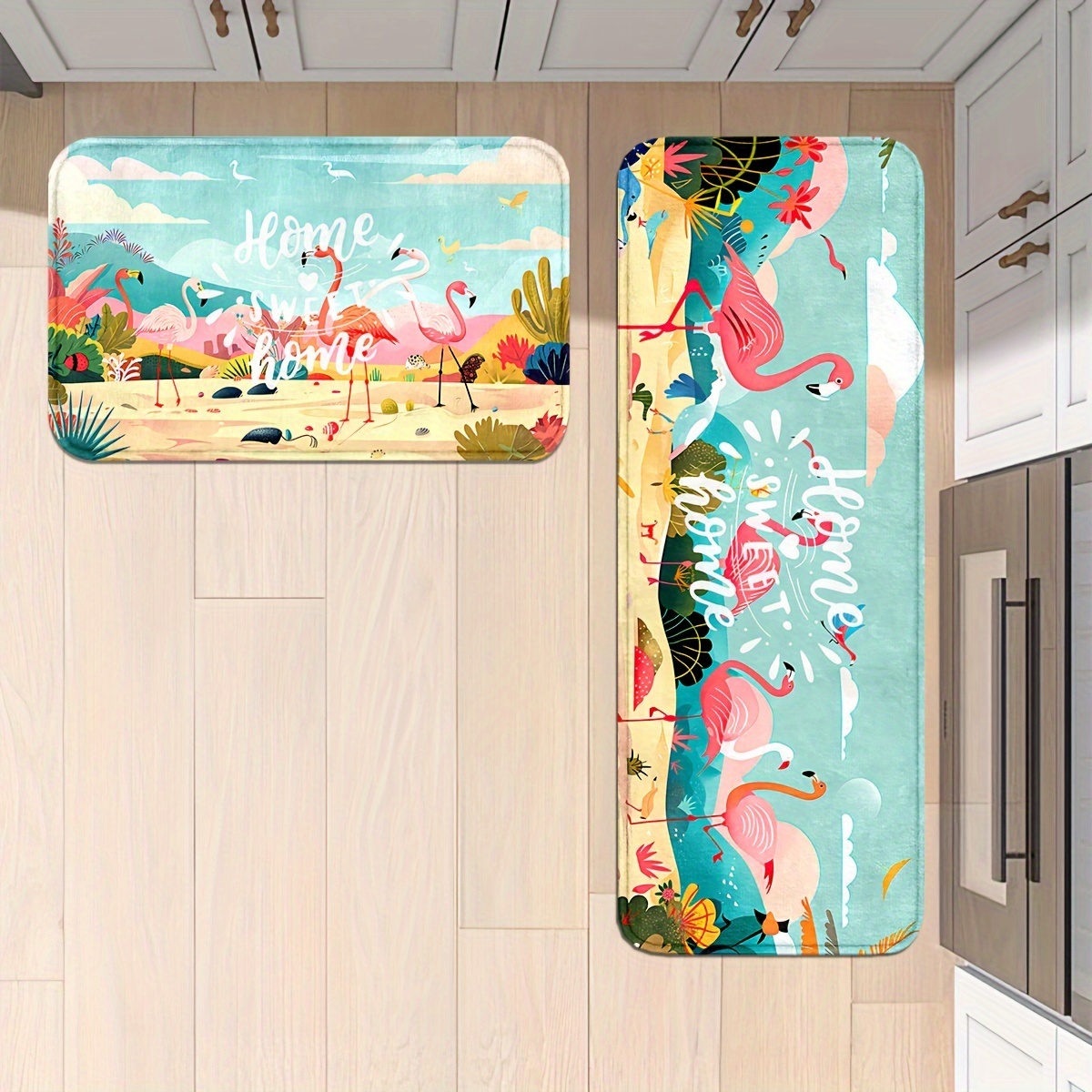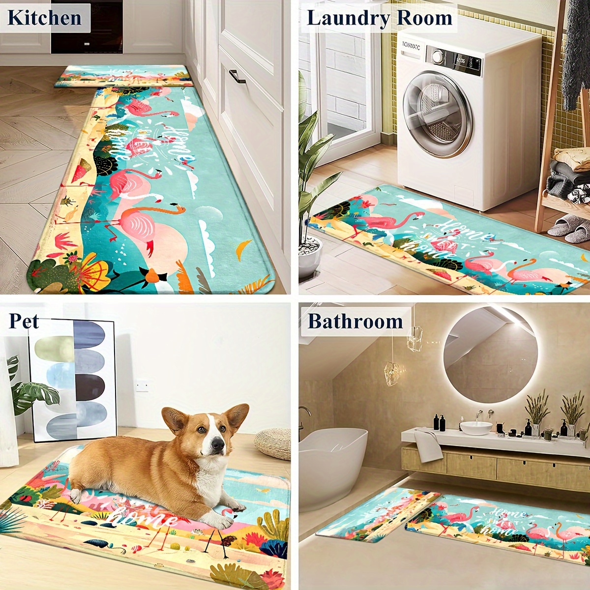 Flannel Rug 2-Piece Set - Easter Bunny Oil Painting Floral Jungle Pattern Long Rug