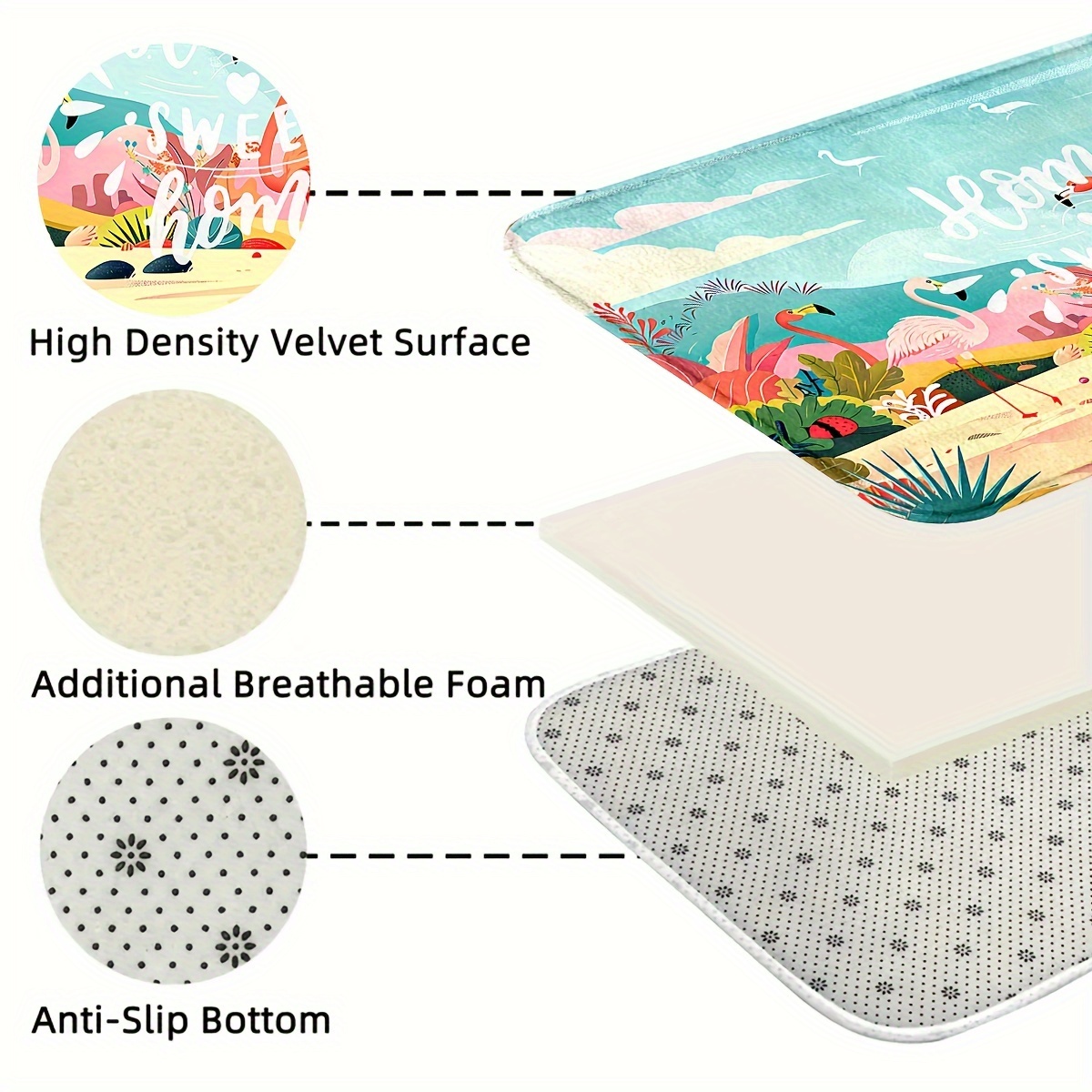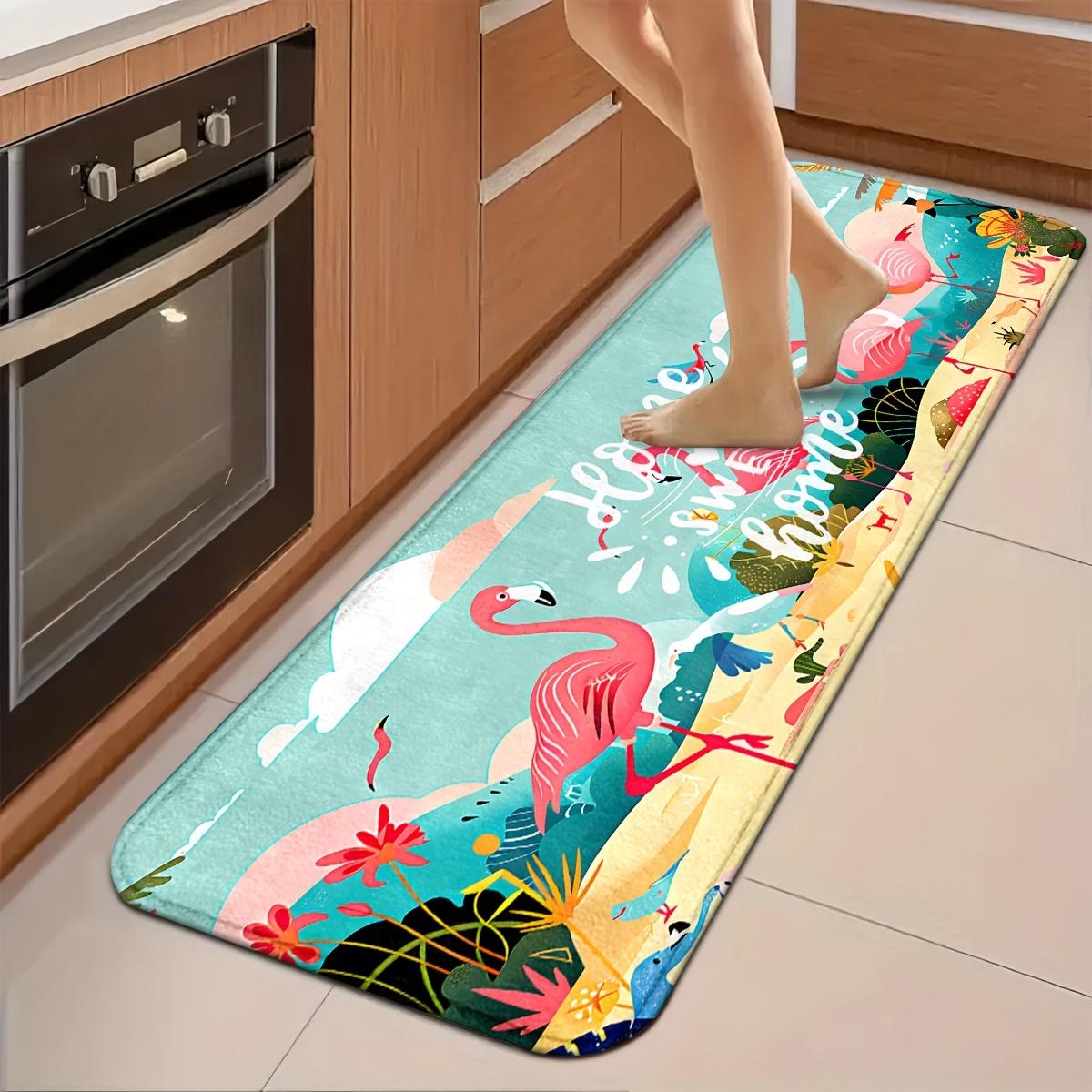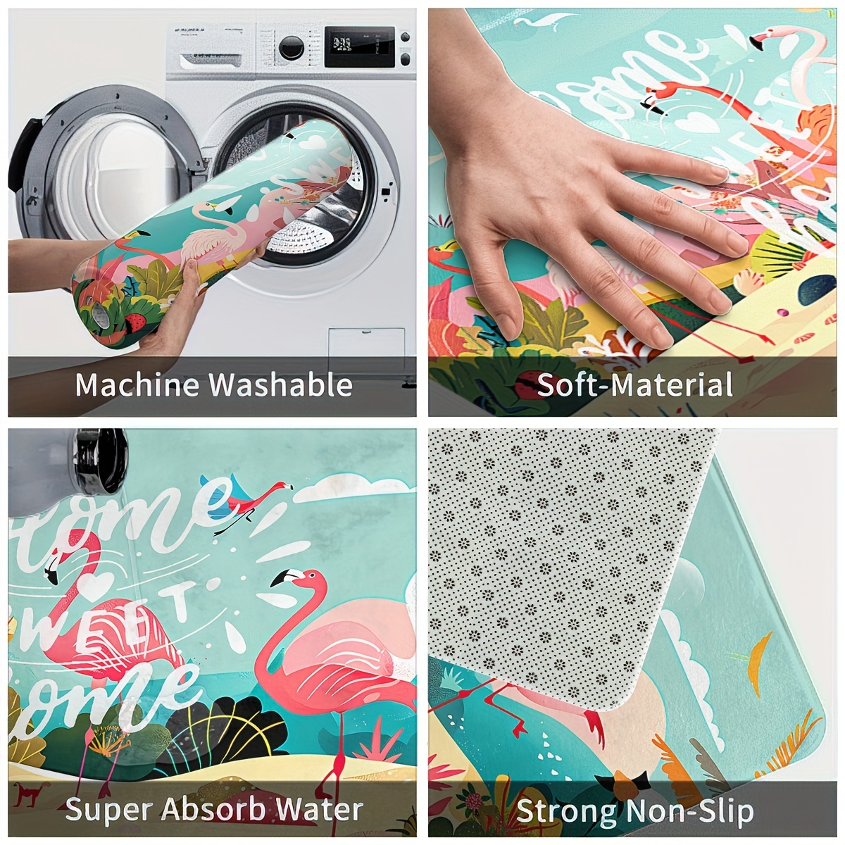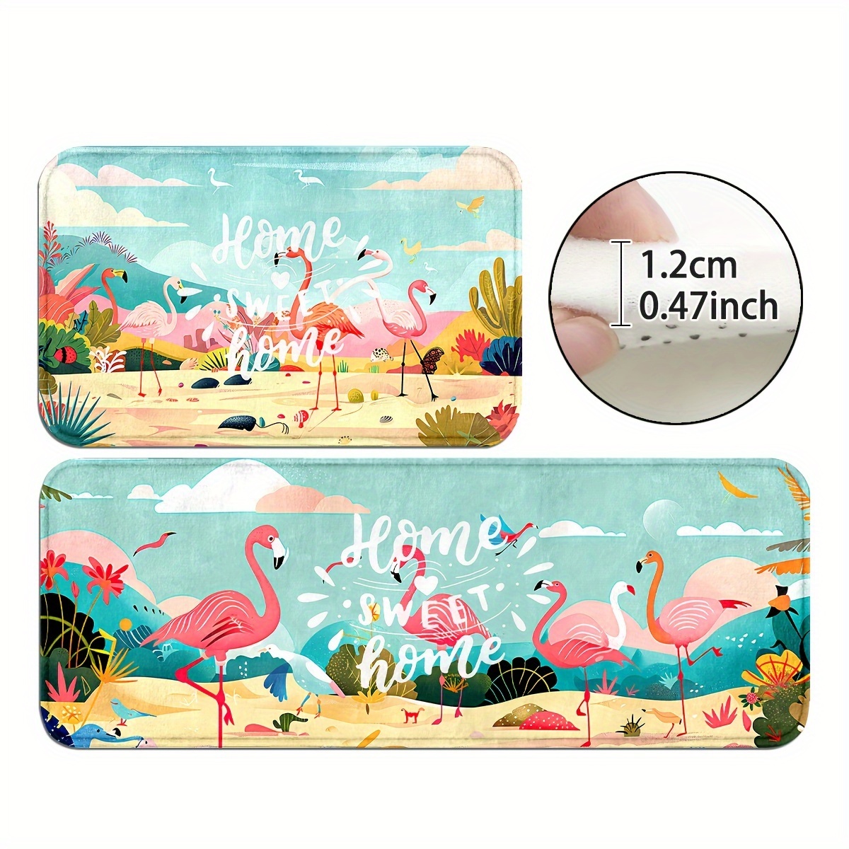 Flannel Rug 2-Piece Set - Easter Bunny Oil Painting Floral Jungle Pattern Long Rug