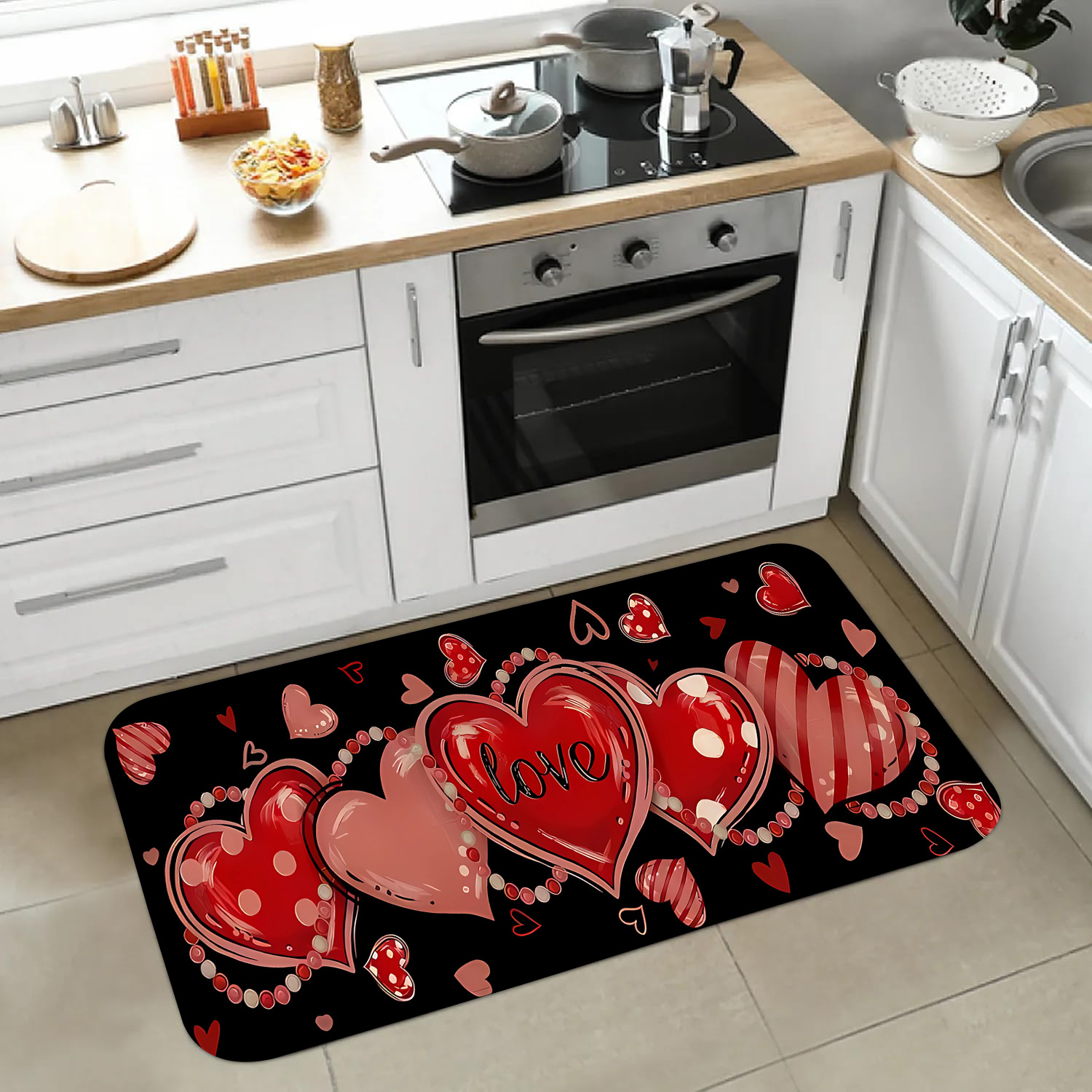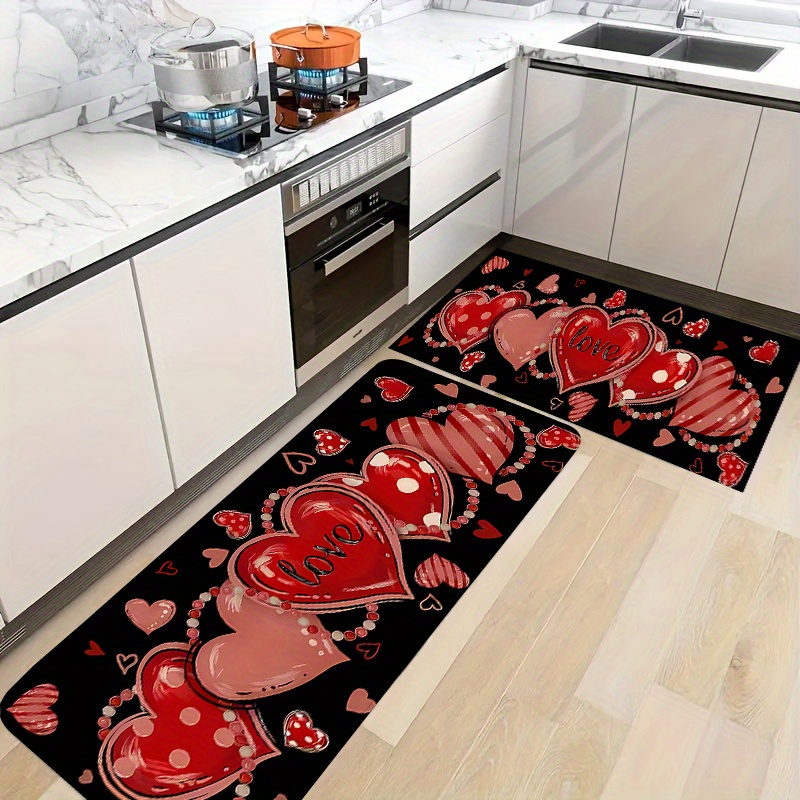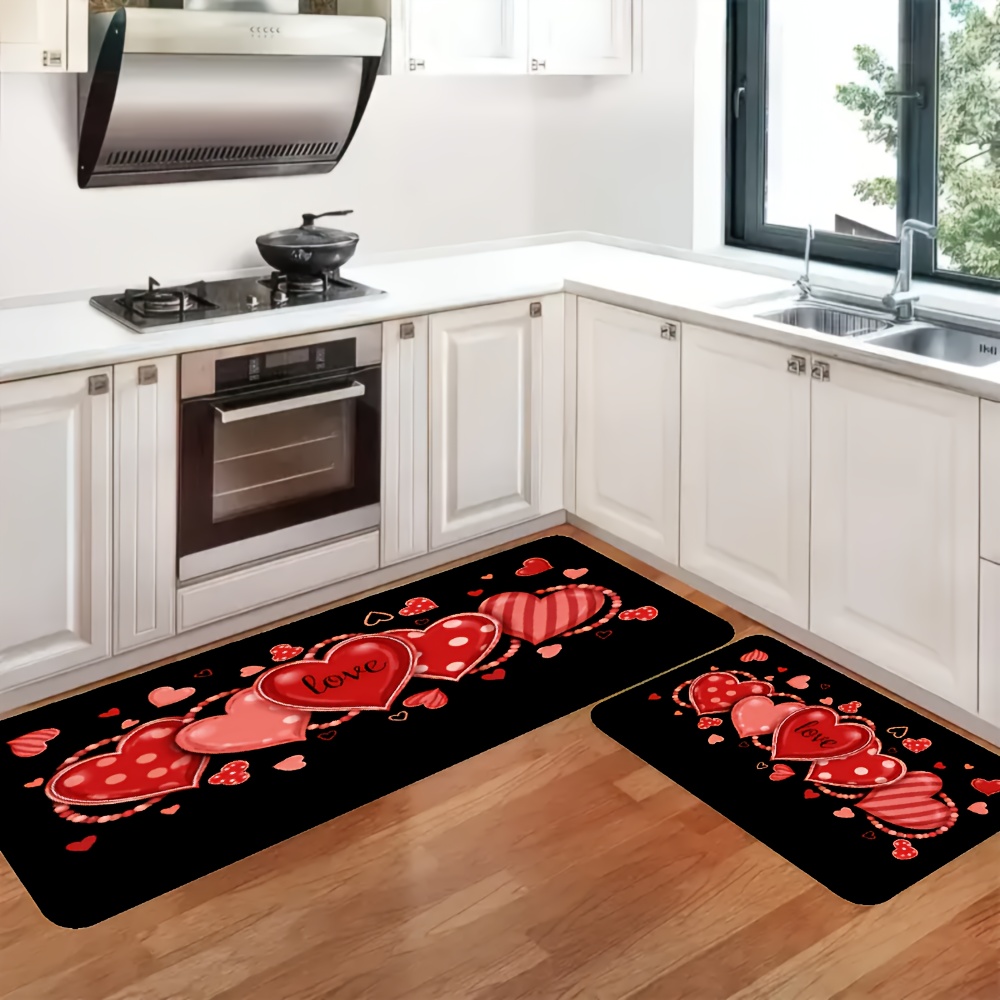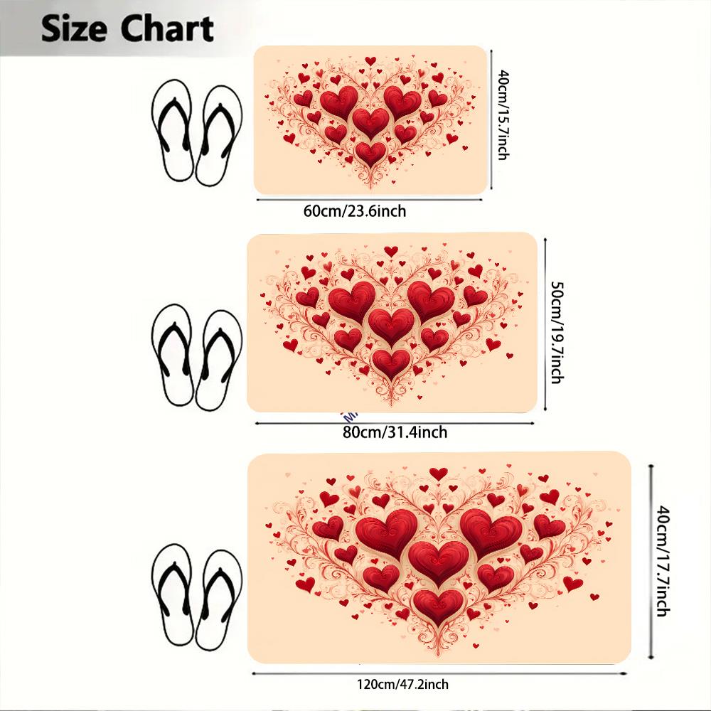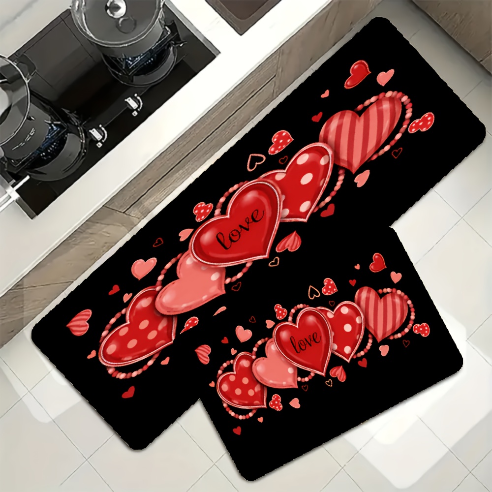 3-Piece Flannel Rug Set - Valentine's Day Kitchen Rug Set with Heart Pattern