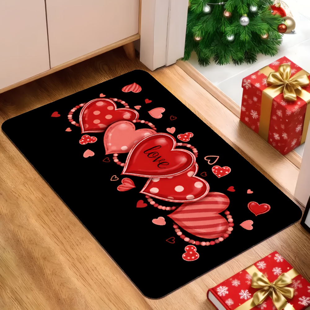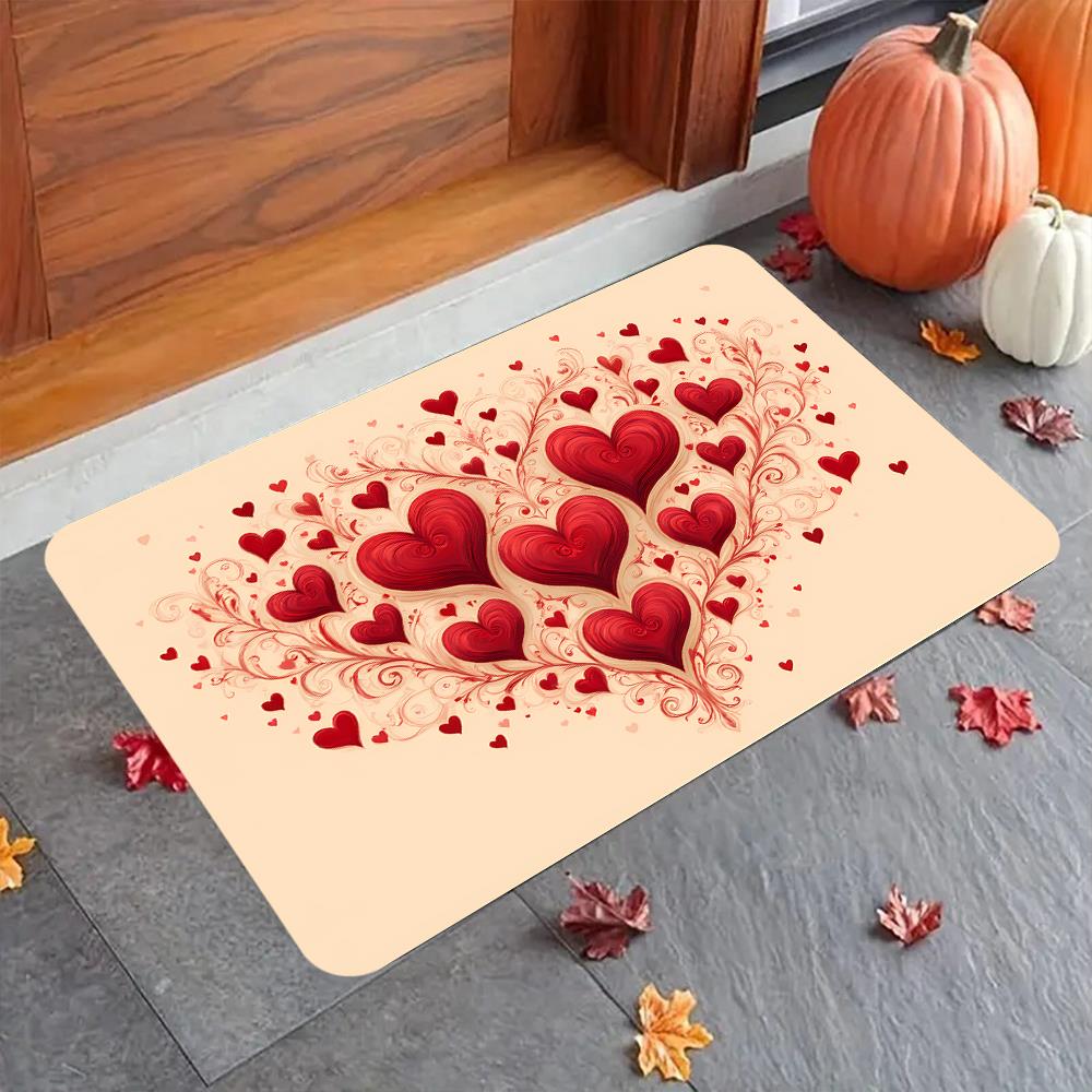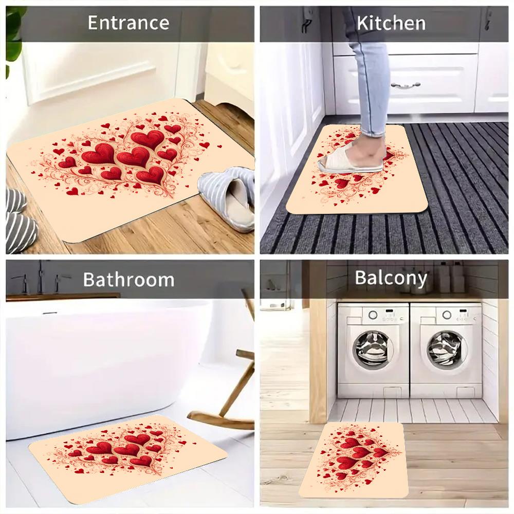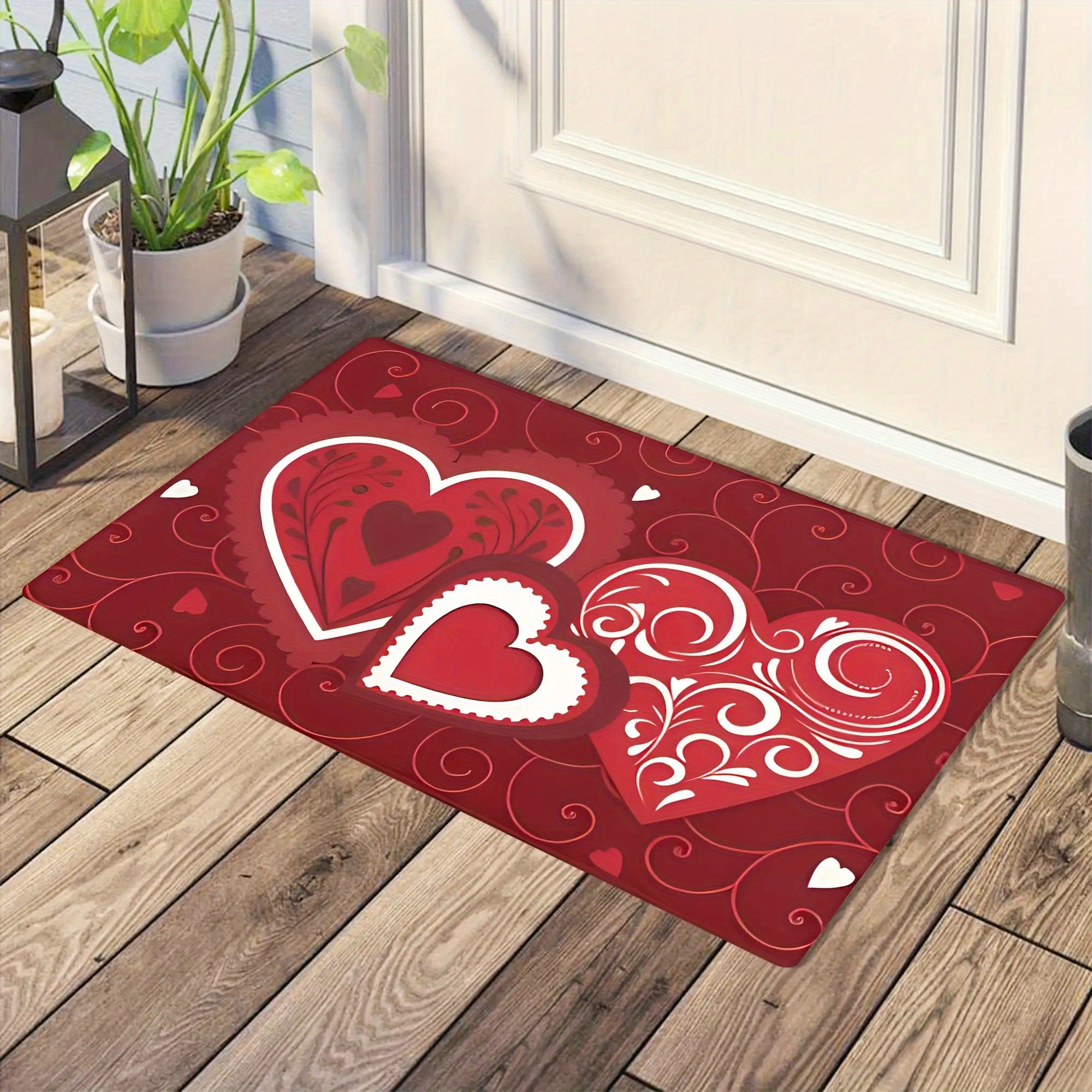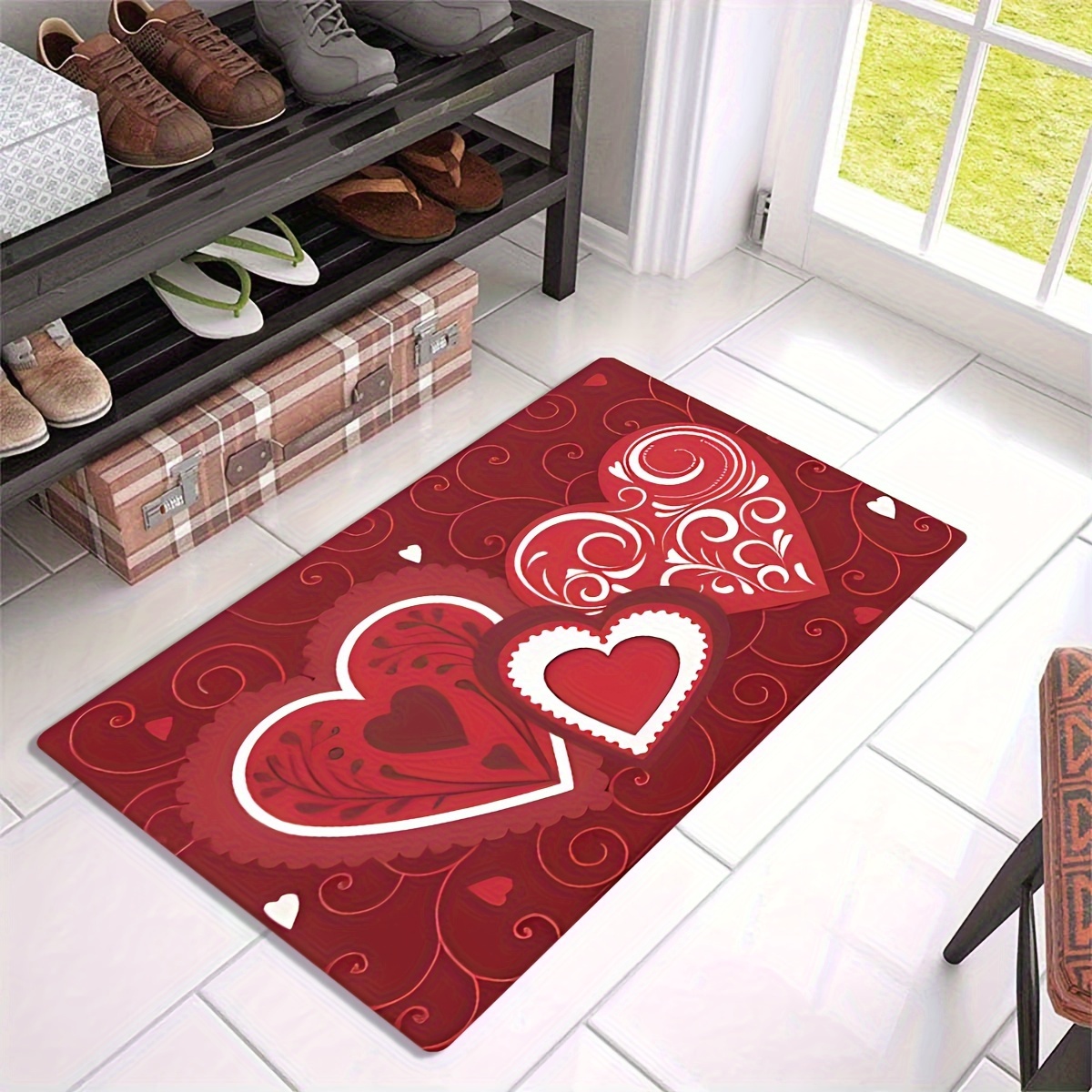 3-Piece Flannel Rug Set - Valentine's Day Kitchen Rug Set with Heart Pattern