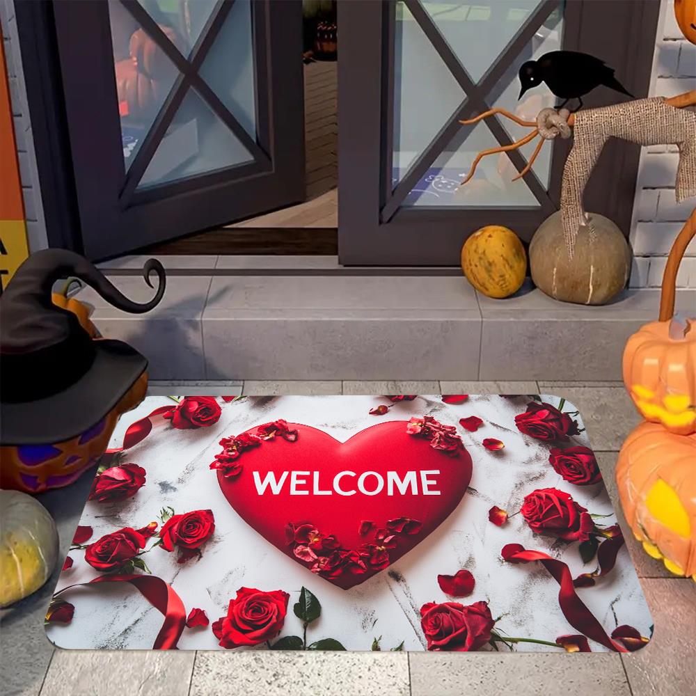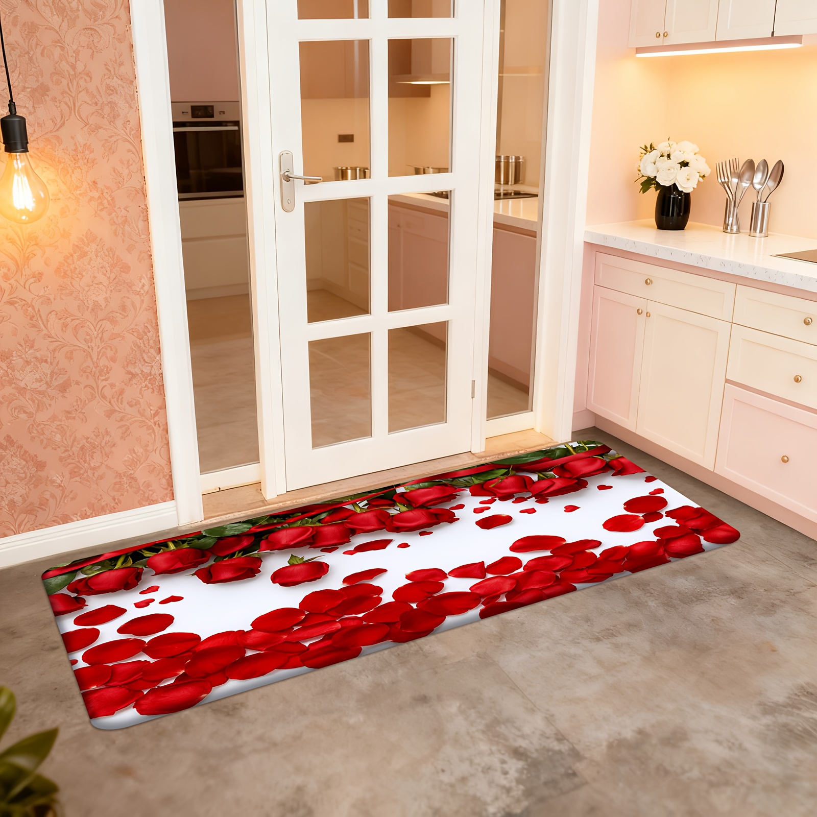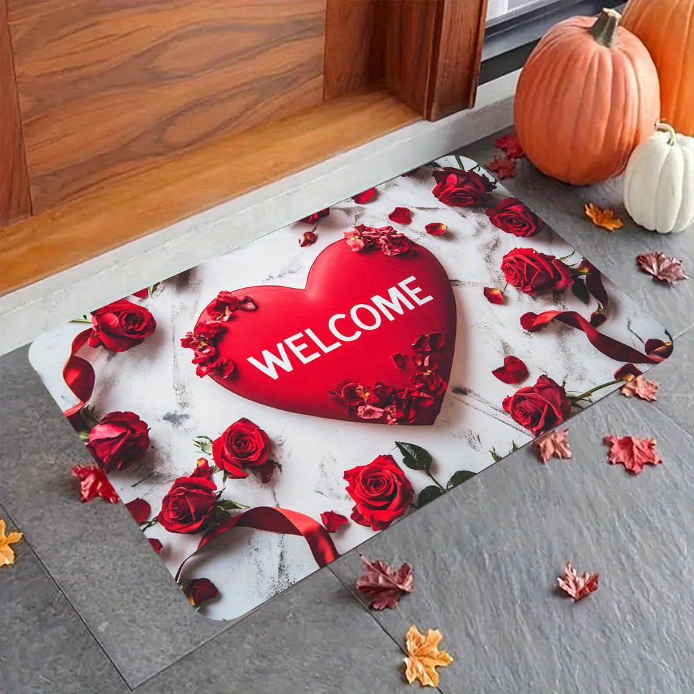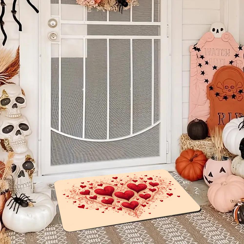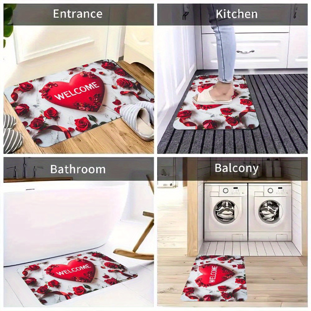 3-Piece Flannel Rug Set - Valentine's Day Kitchen Rug Set with Heart Pattern