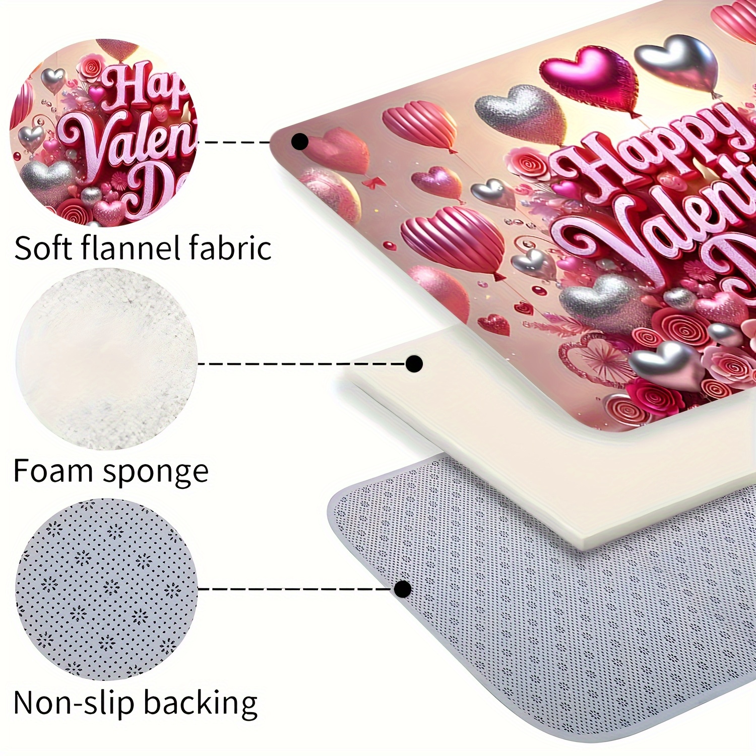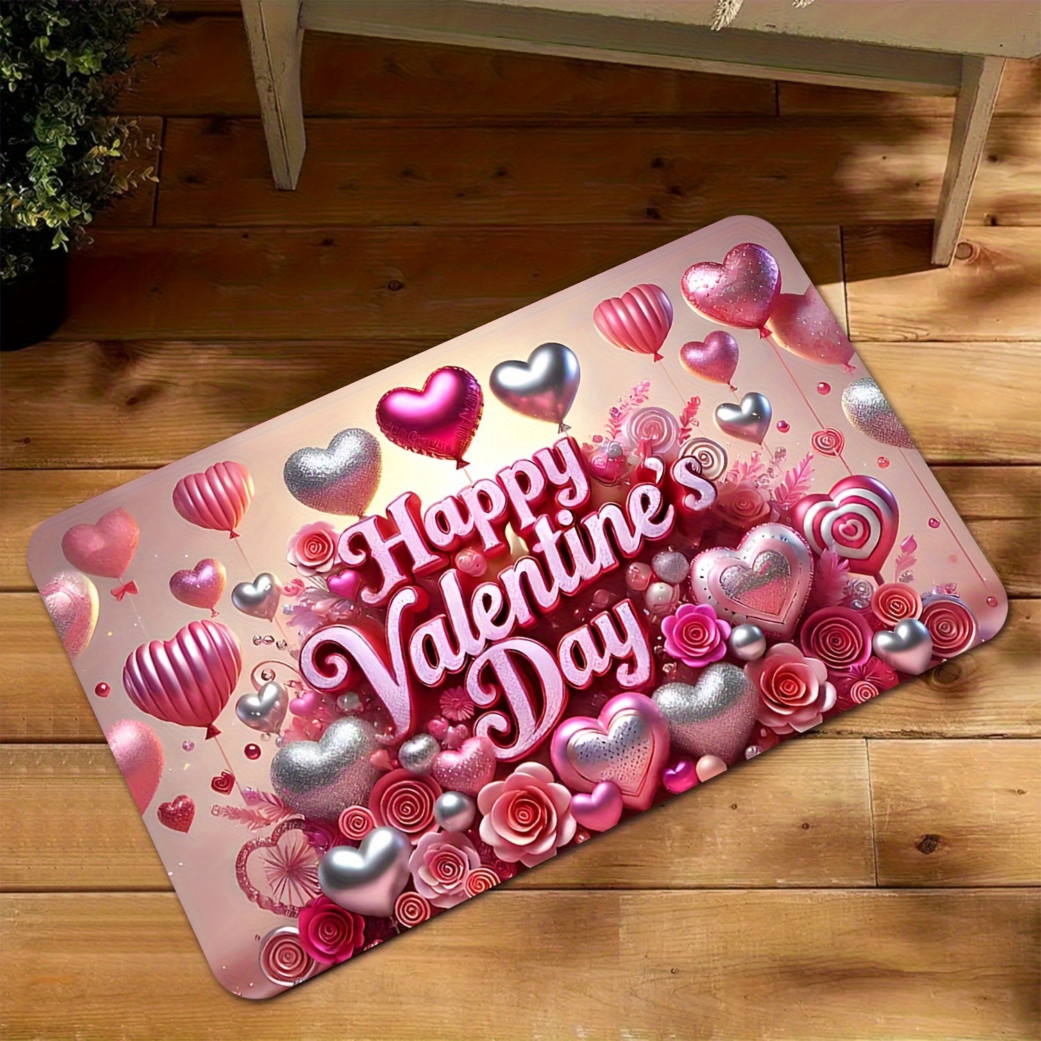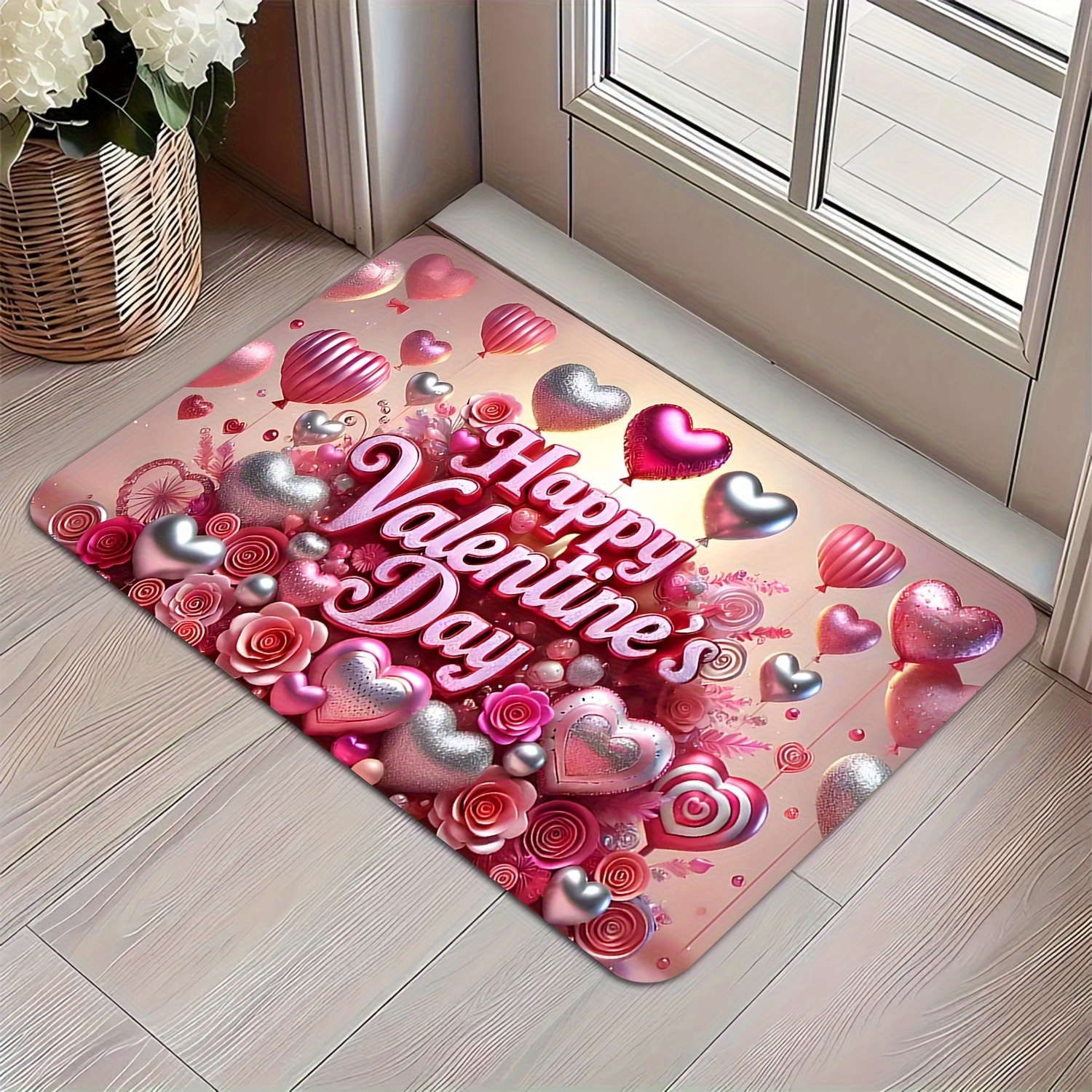 Flannel rug - Valentine's Day pink heart balloon floral pattern floor mat