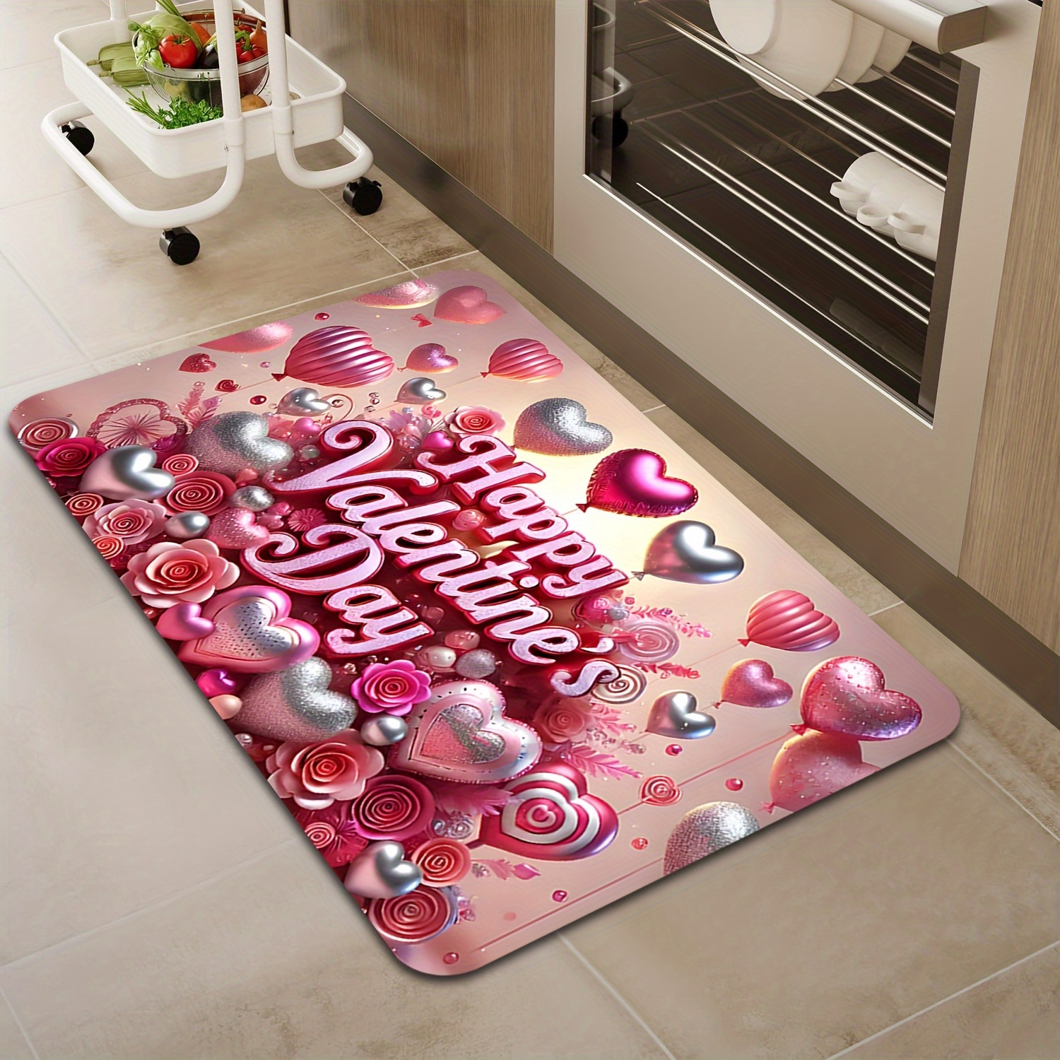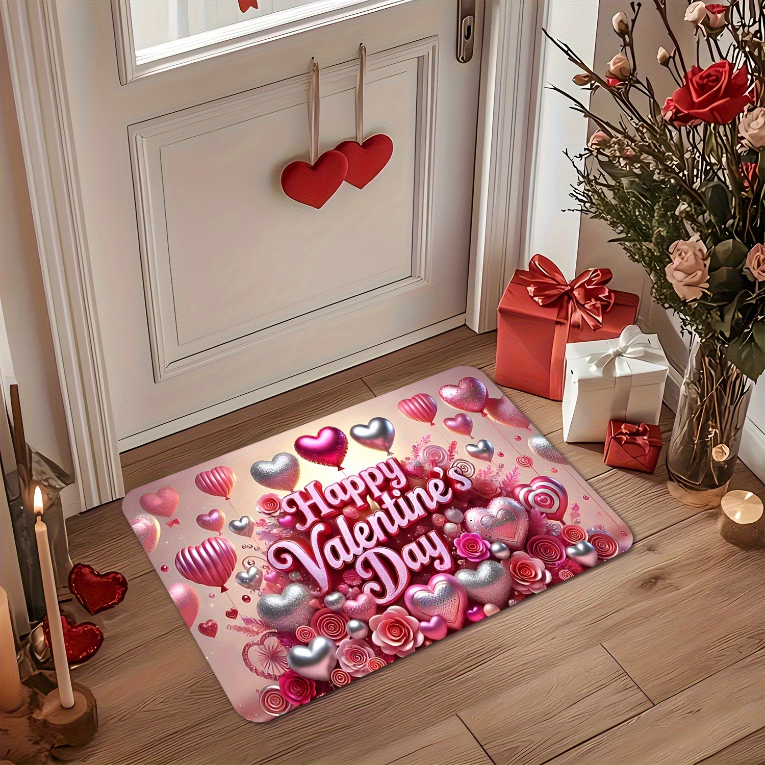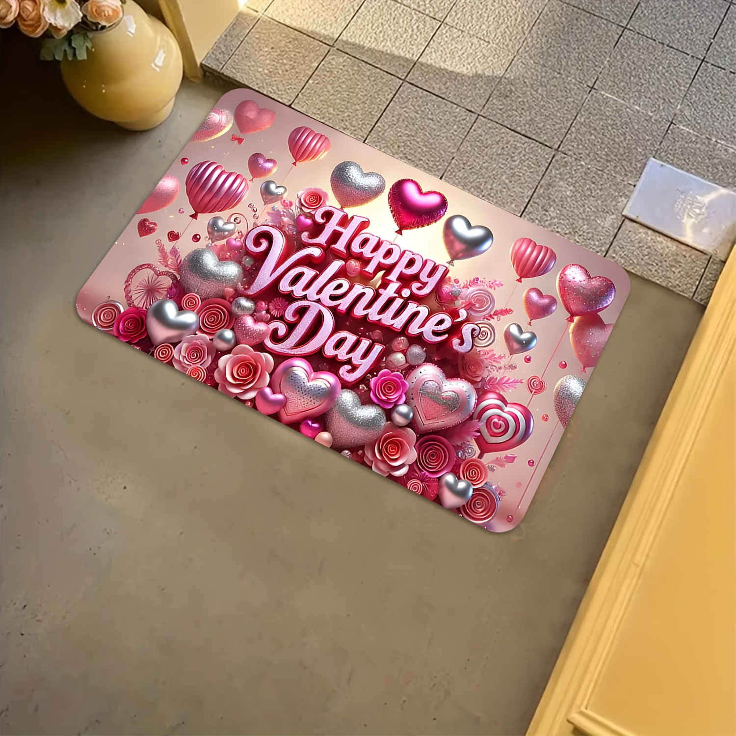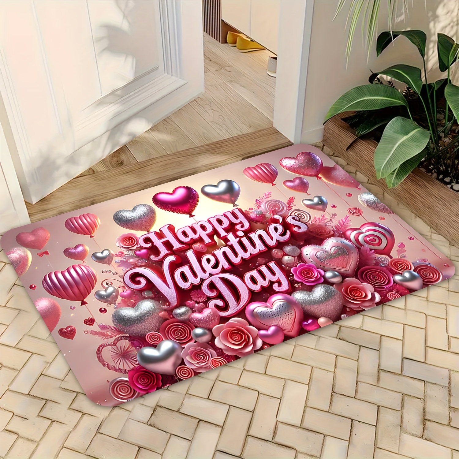 Flannel rug - Valentine's Day pink heart balloon floral pattern floor mat