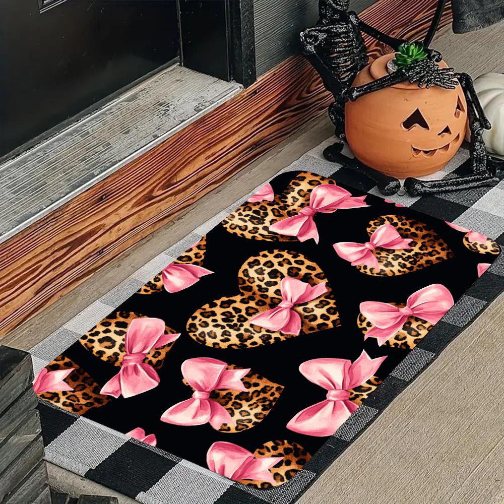 Flannel Rug - 2-piece set-Valentine's Day Modern Red Rose Leopard Print Rectangular Mat