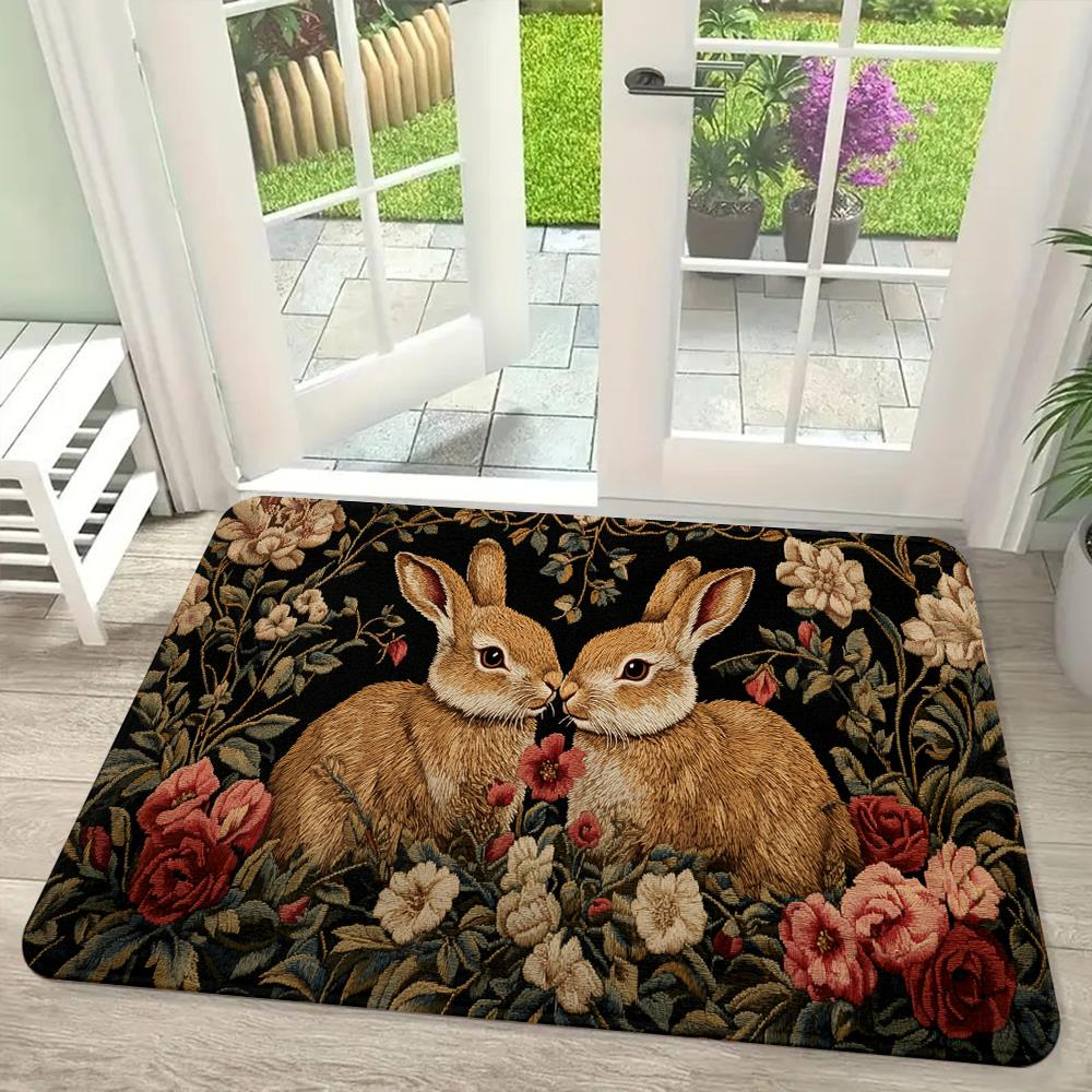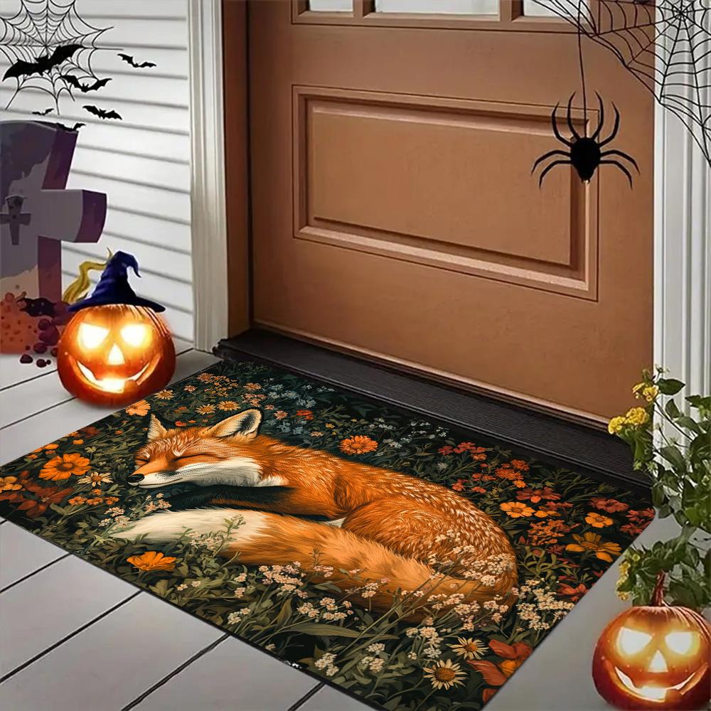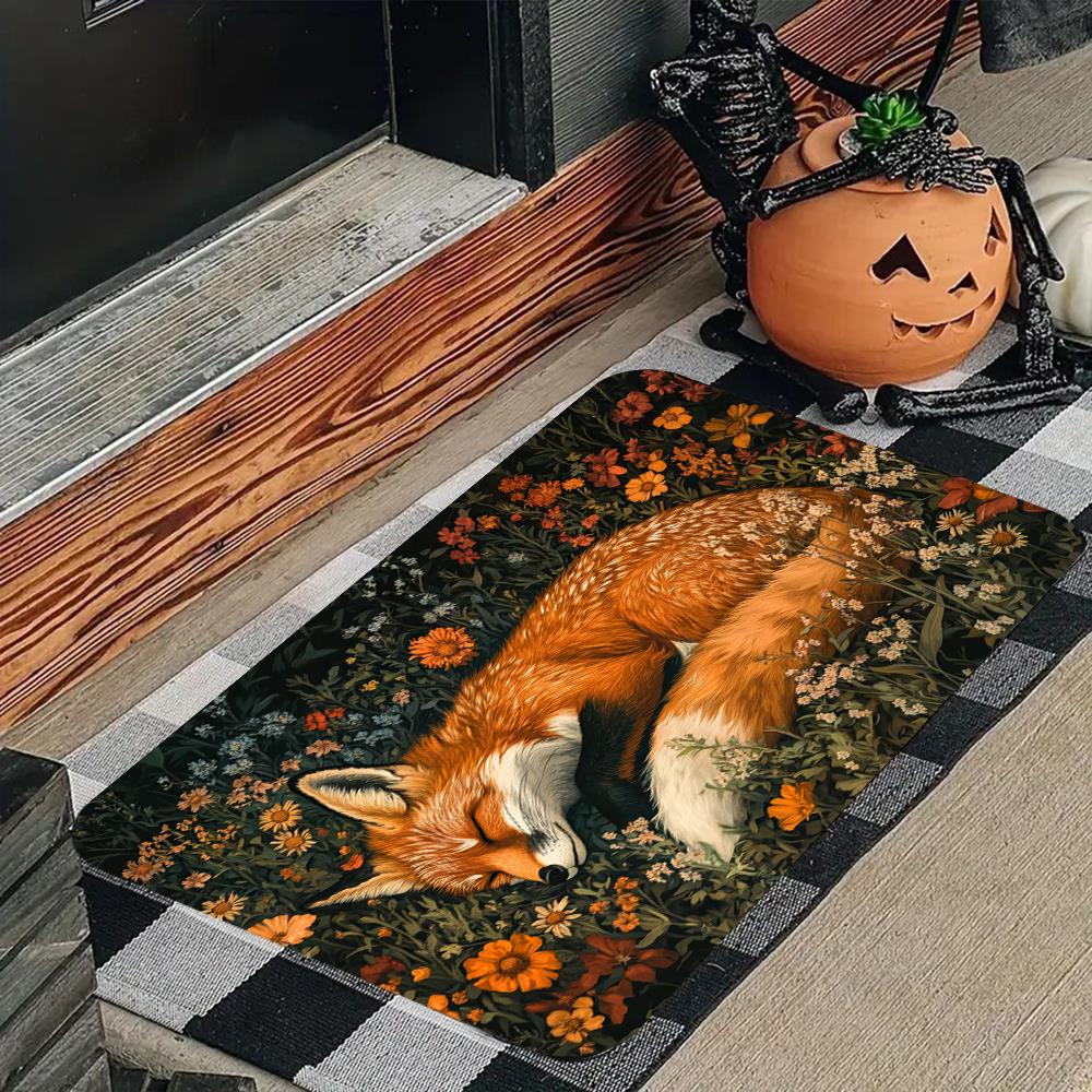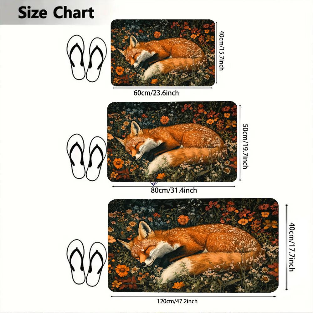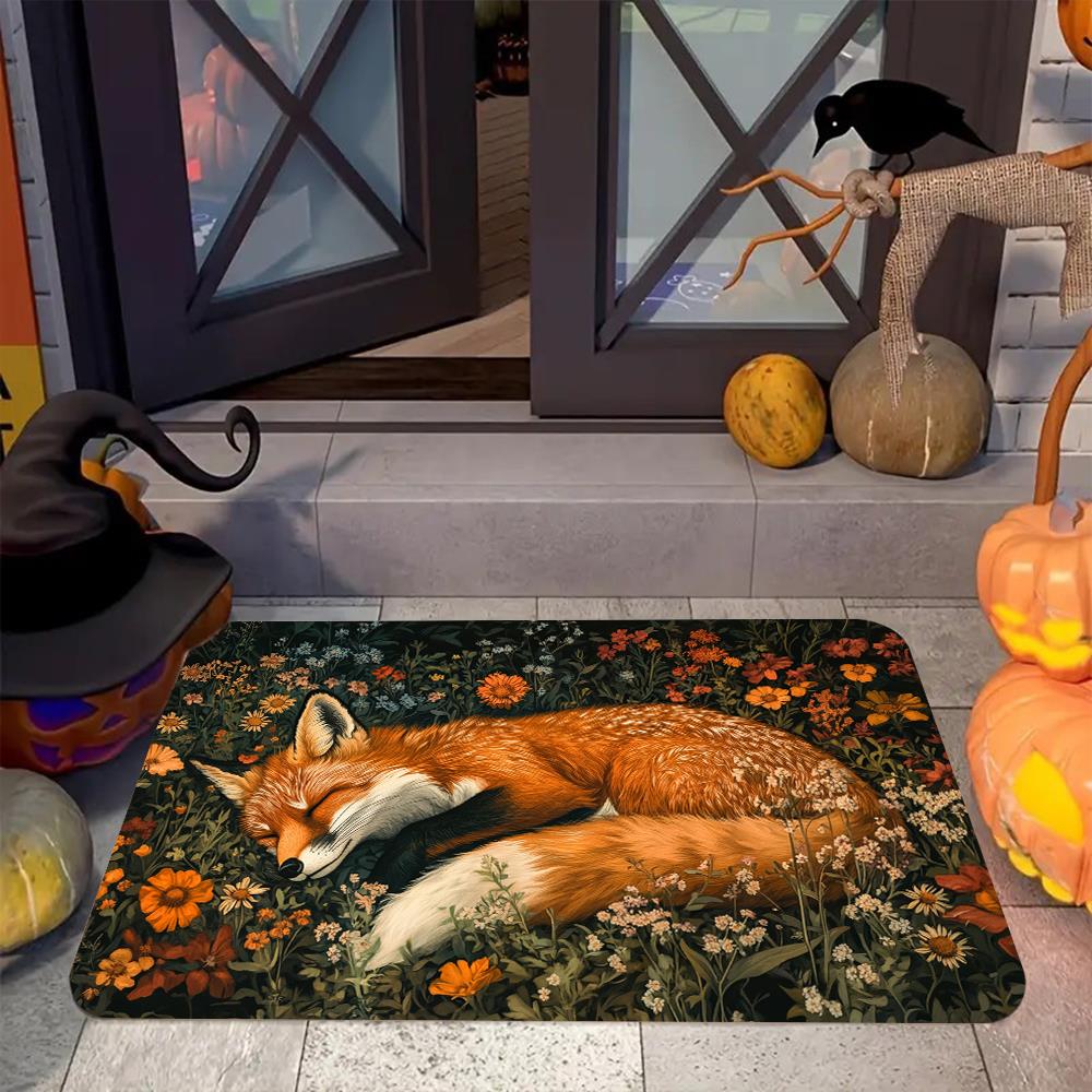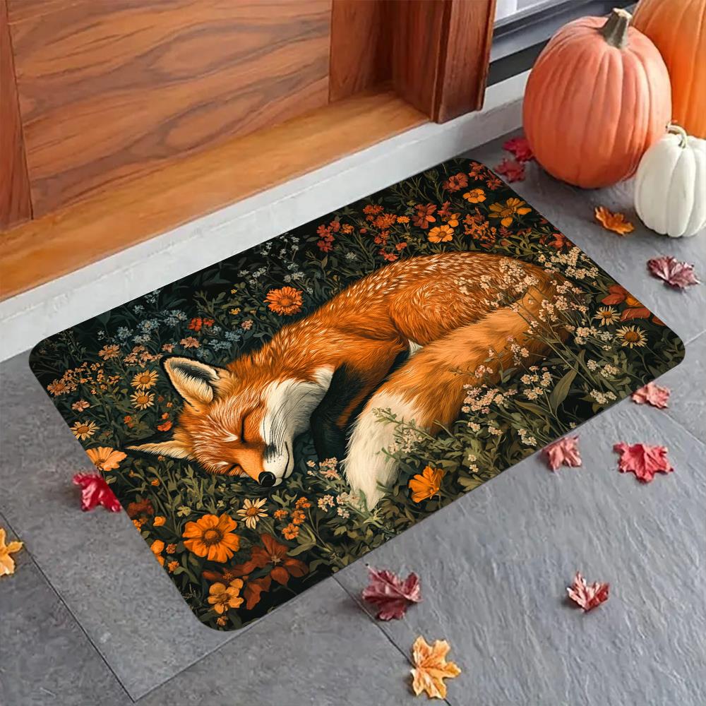 Flannel rug - Modern doormat - Cartoon animal sleeping fox wildflower pattern non-slip mat