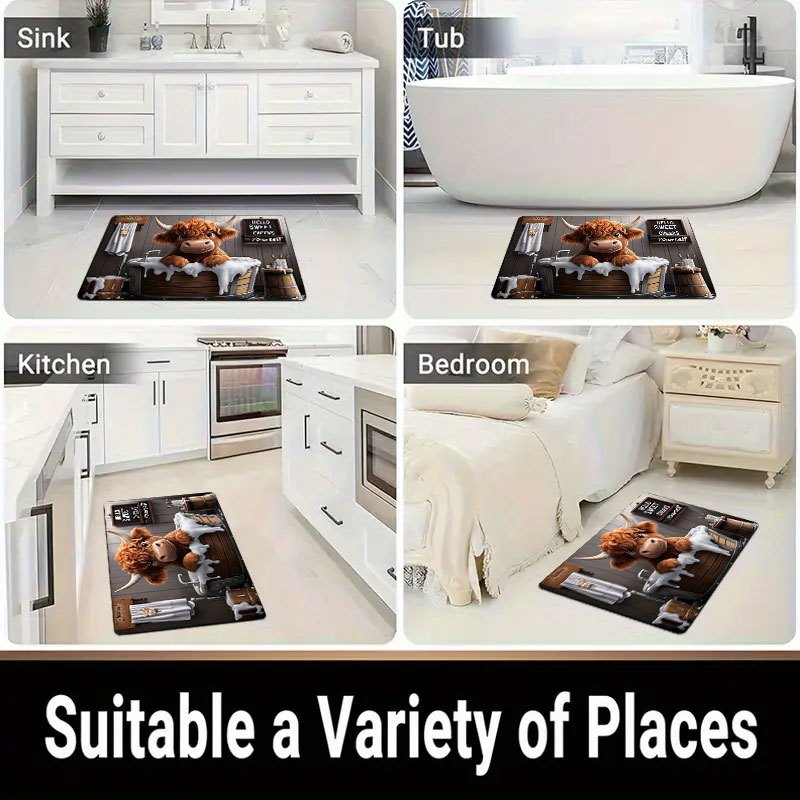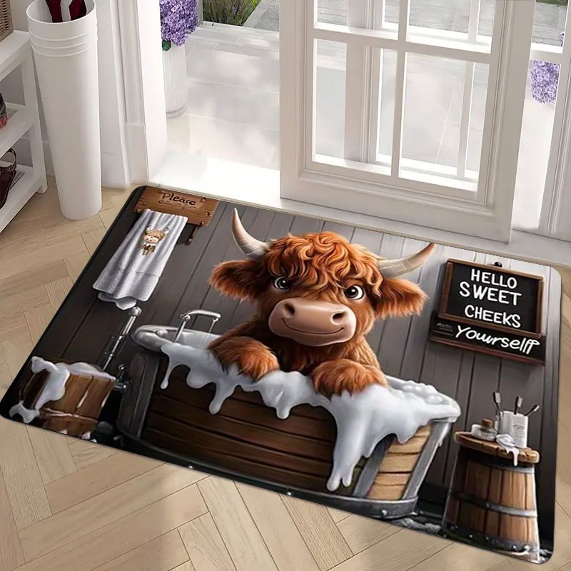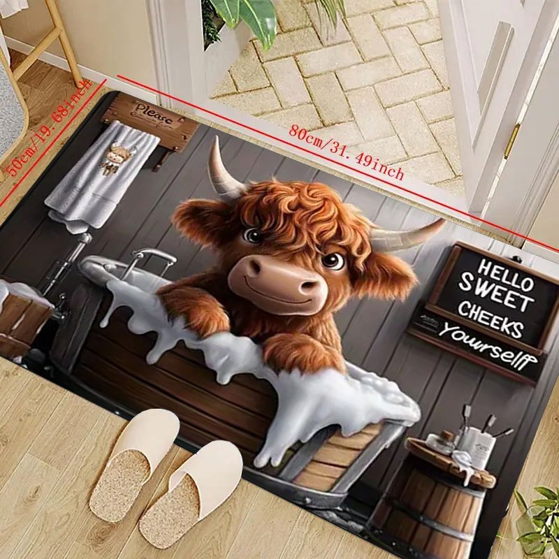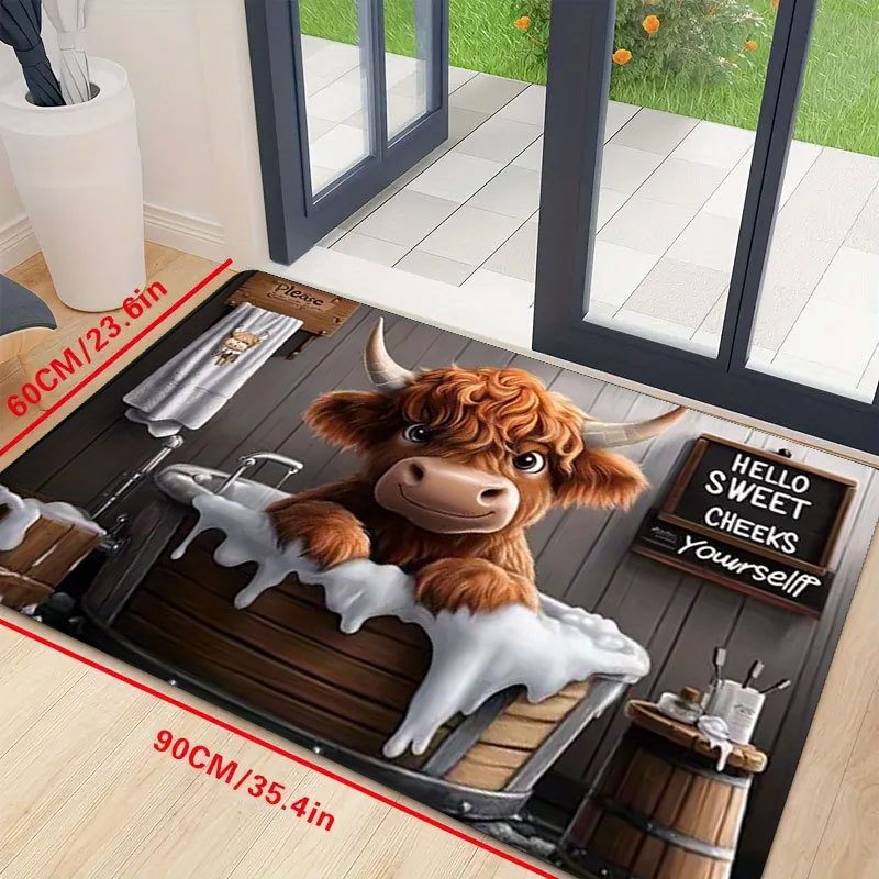 Flannel Rug - Cow Welcome Mat| Soft and Cute Scottish Cow Animal Pattern