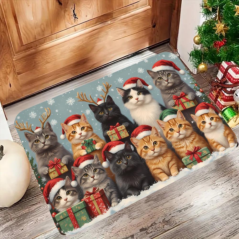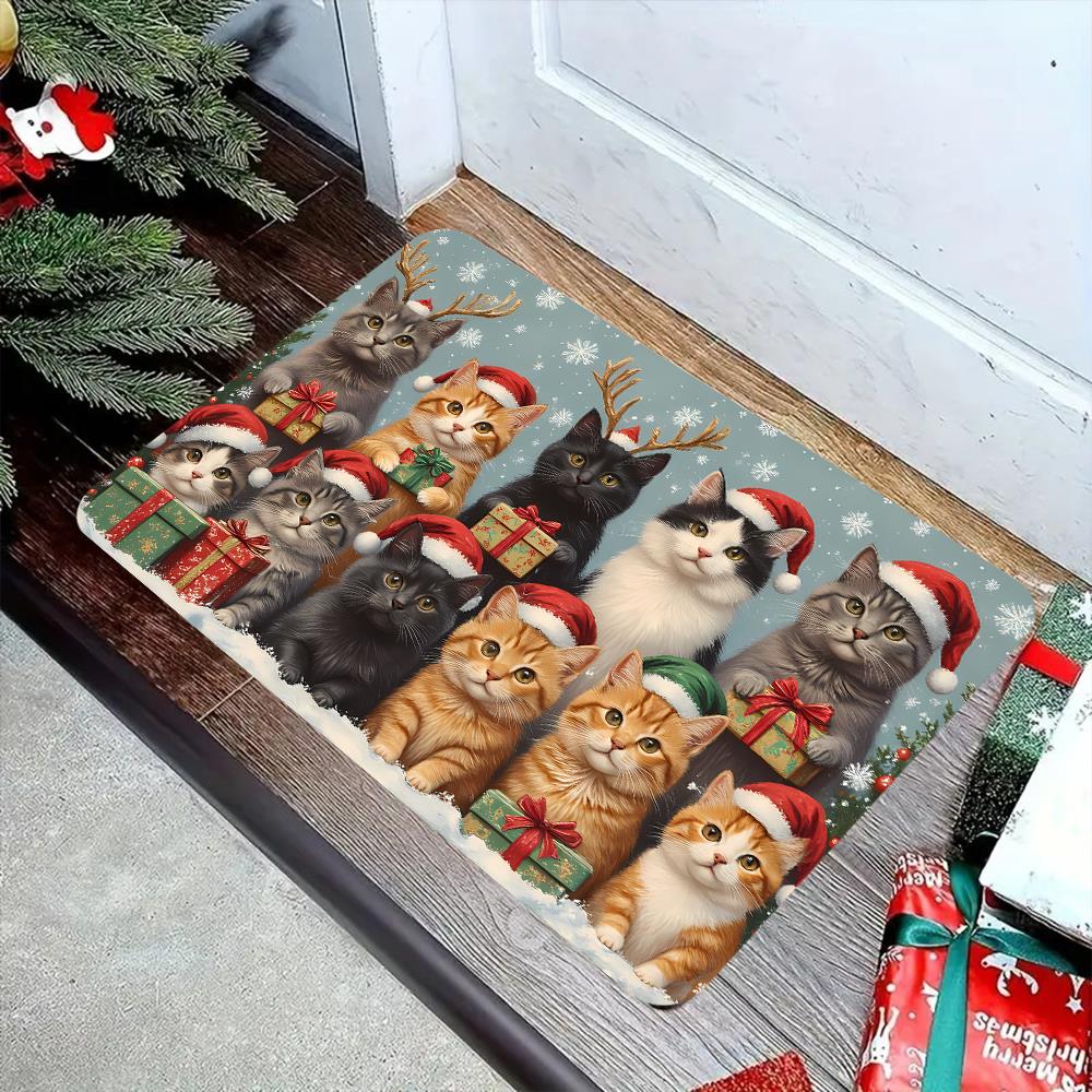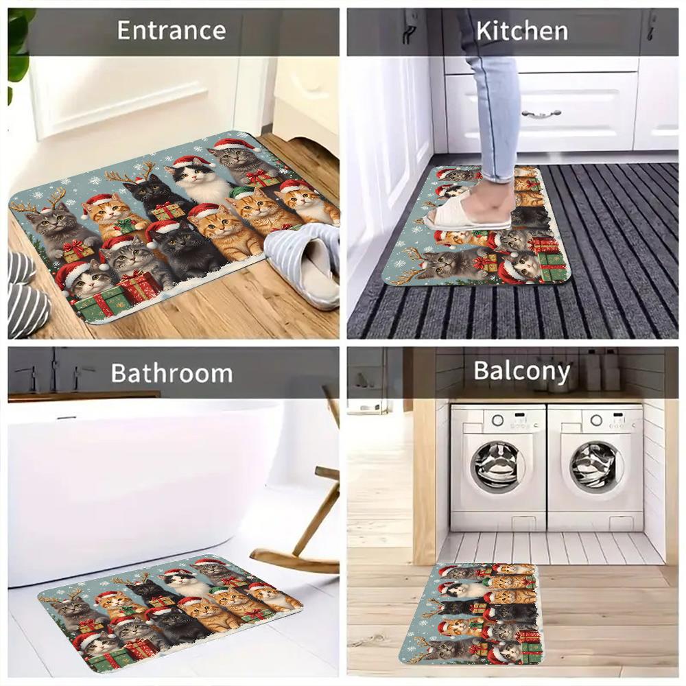 Modern style flannel rug/doormat with cartoon animal Christmas cat pattern
