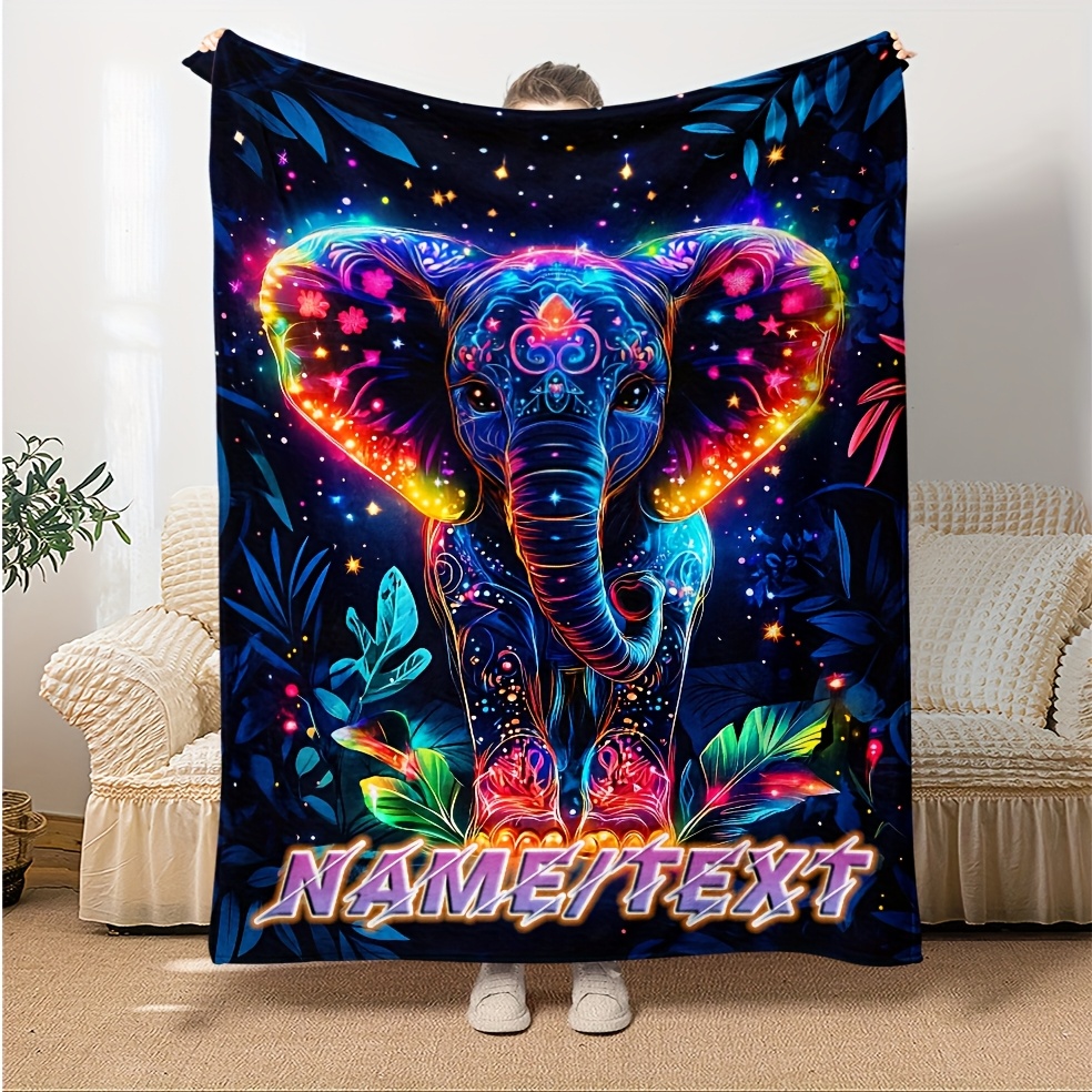 Flannel Blanket - Personalized Elephant Glow-in-the-Dark Blanket