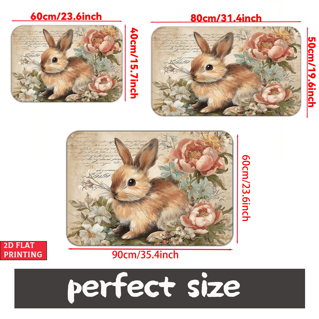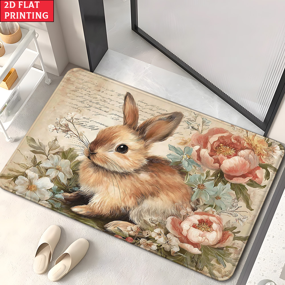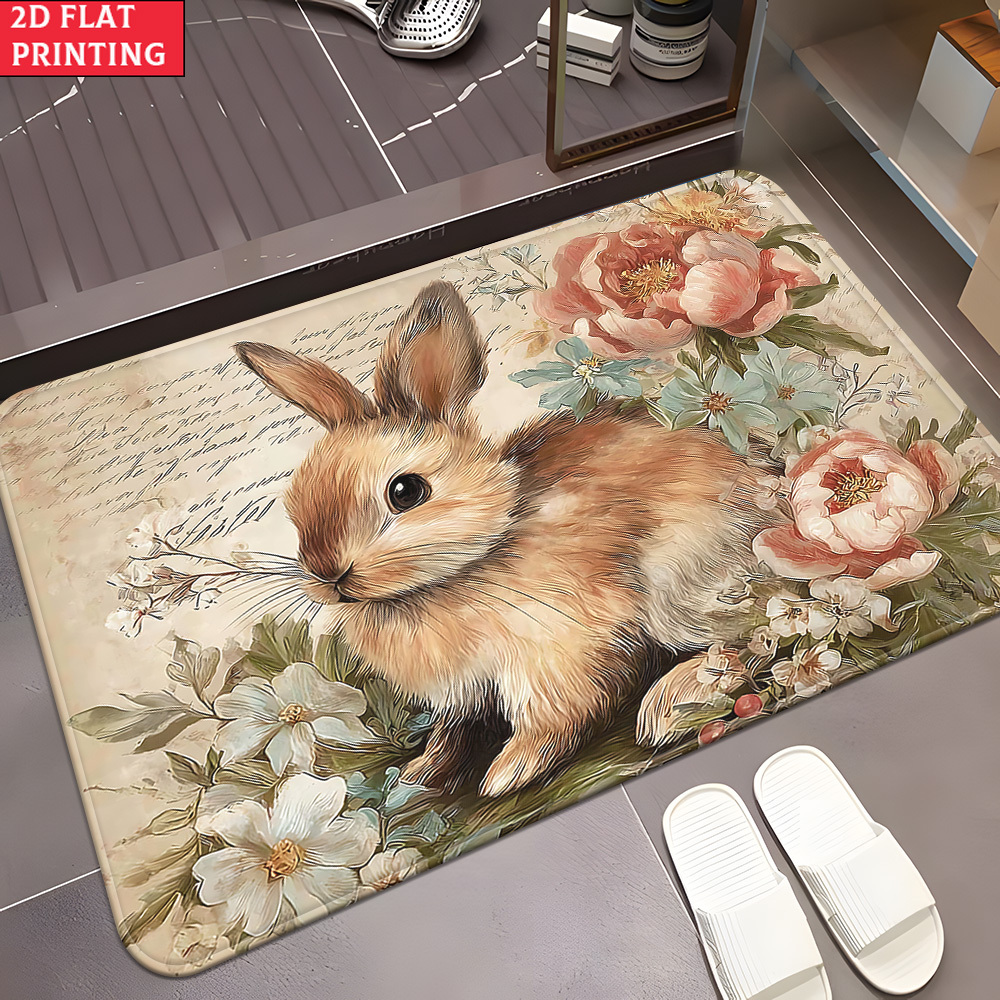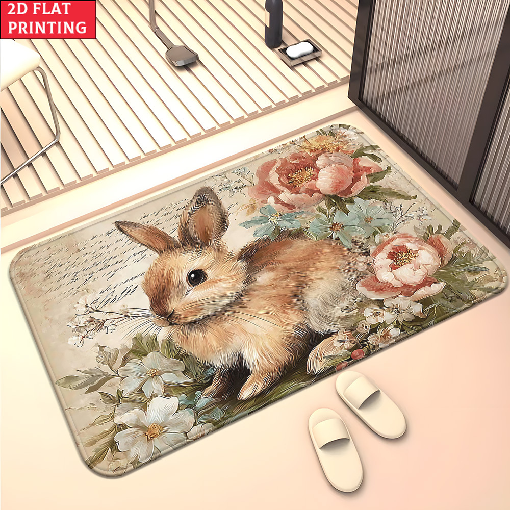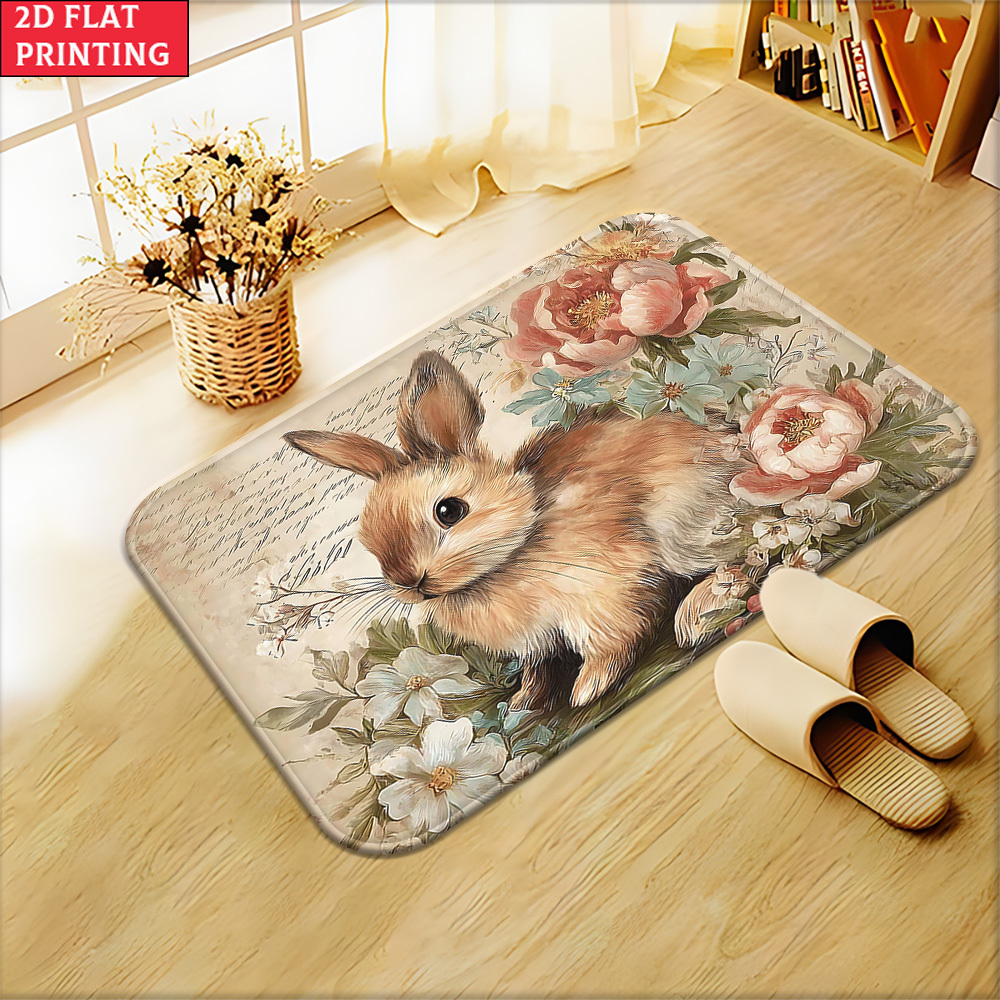 Flannel rug - rabbit and rose pattern